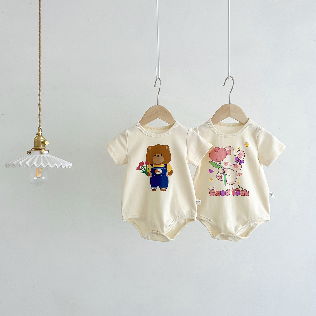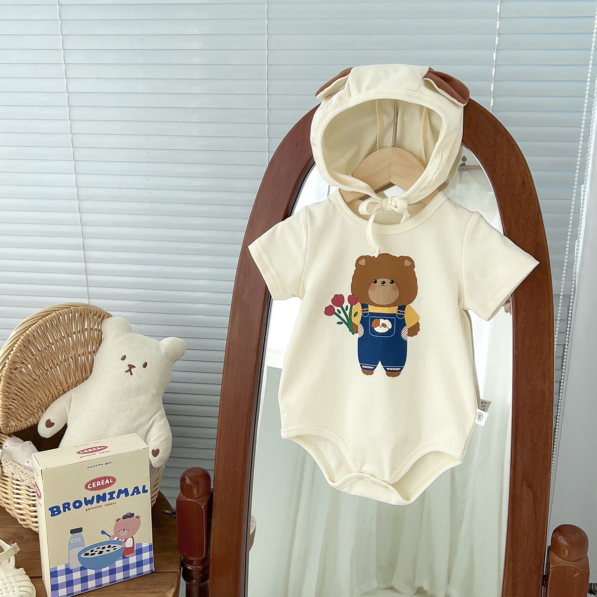 신생아 만화 모양의 가방 옷에 한국 스타일 아기 귀여운 곰 점프 슈트 아기 백일 사진 세트스토어 가기