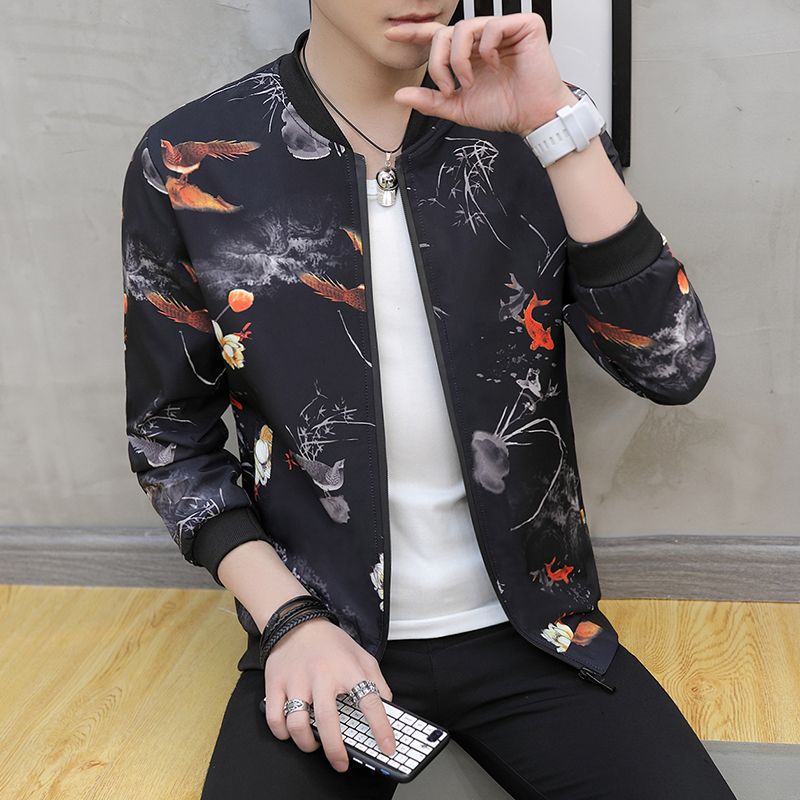 Shanli Dadi 봄과 가을 청소년 꽃 자켓 남자 한국 유행 컬러 자켓 재킷 학생 남자 야구