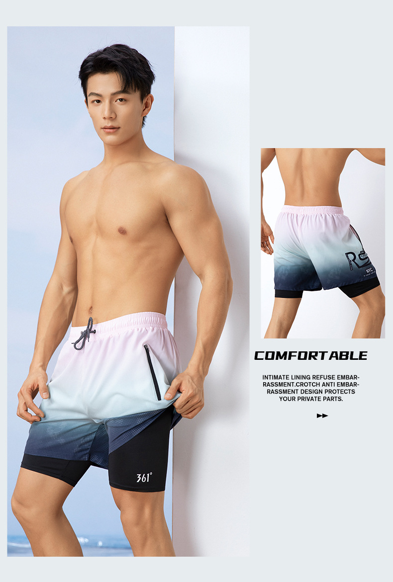 361 수영 트렁크 남성용 더블 레이어 당황 방지 수영 트렁크 남성용 5점 수영 트렁크 2025 새로운 온천 수영복