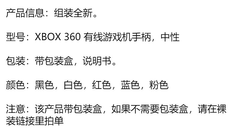 국경 간 뜨거운 판매 XBOX360 컬러 박스 포장 지원 원피스 배달 중립 유선 게임 패드