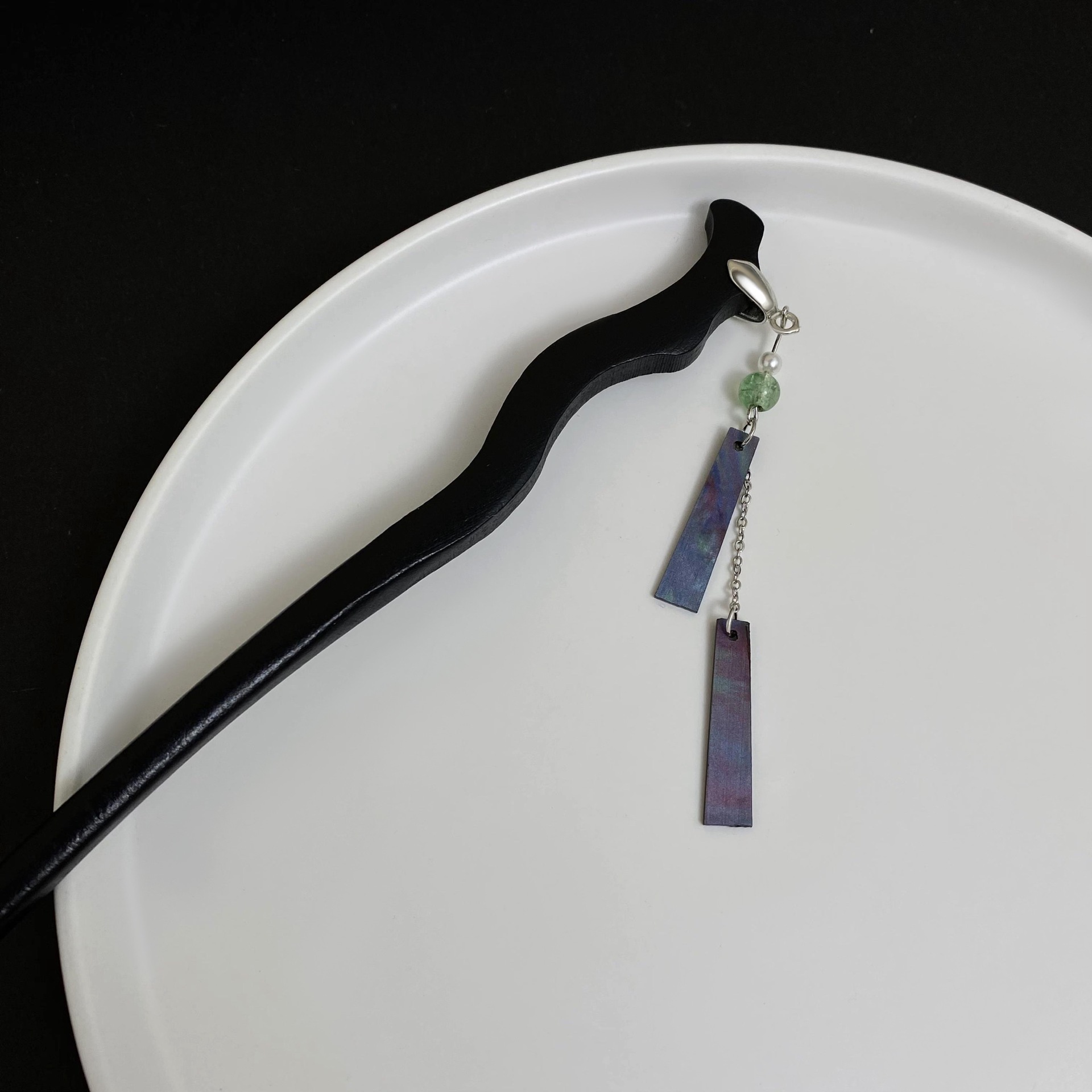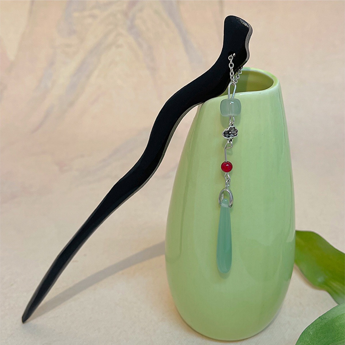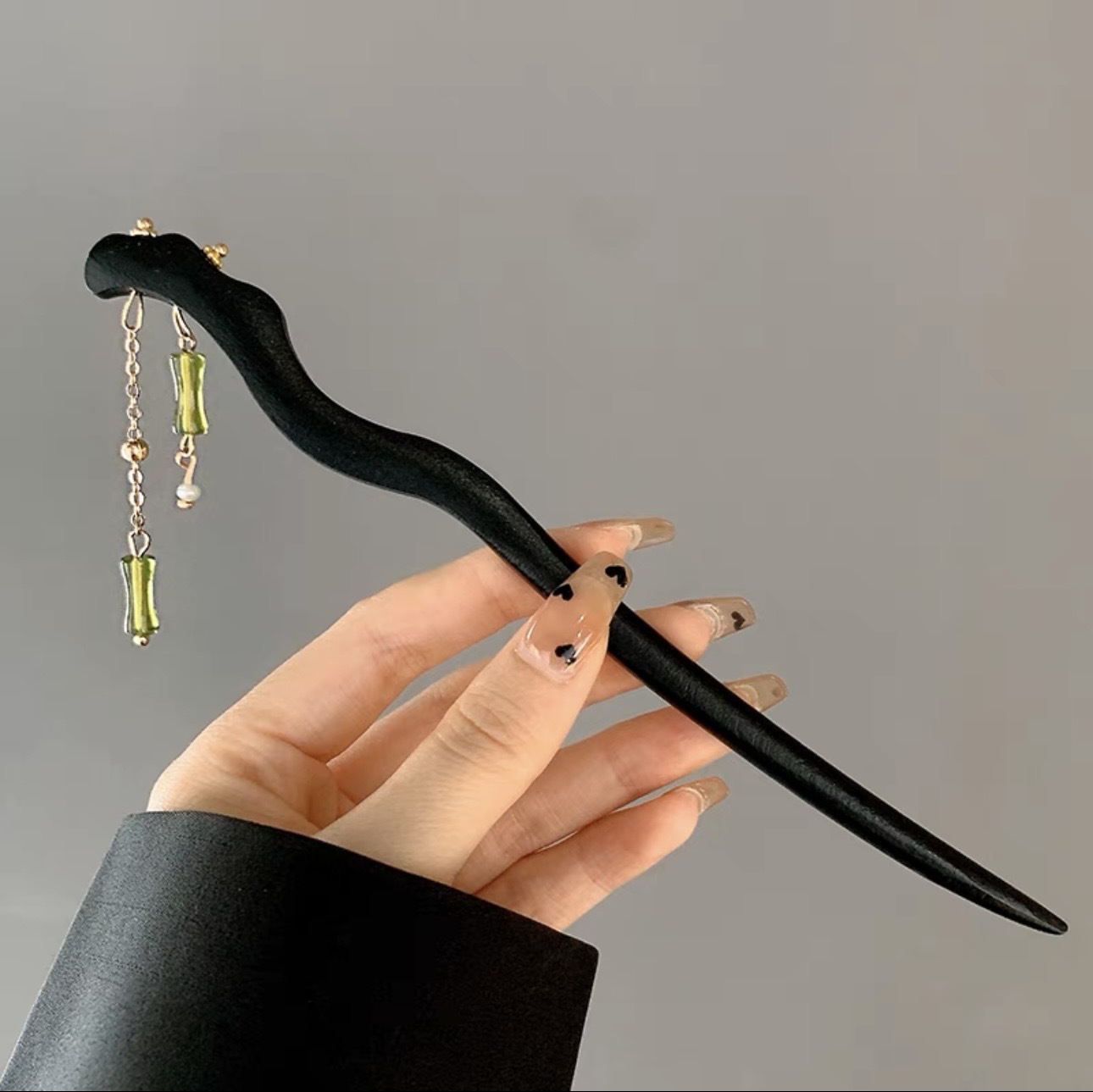 골동품 스타일 대나무 술 나무 머리핀 여자의 간단한 현대 모조 옥 펜던트 중국 스타일 머리핀 우아한 머리 모자