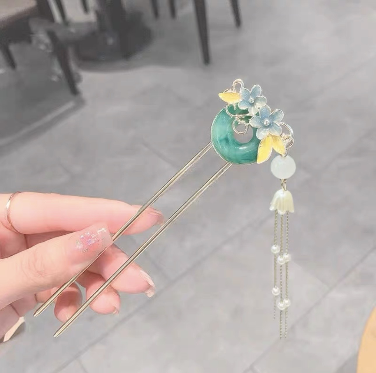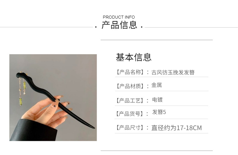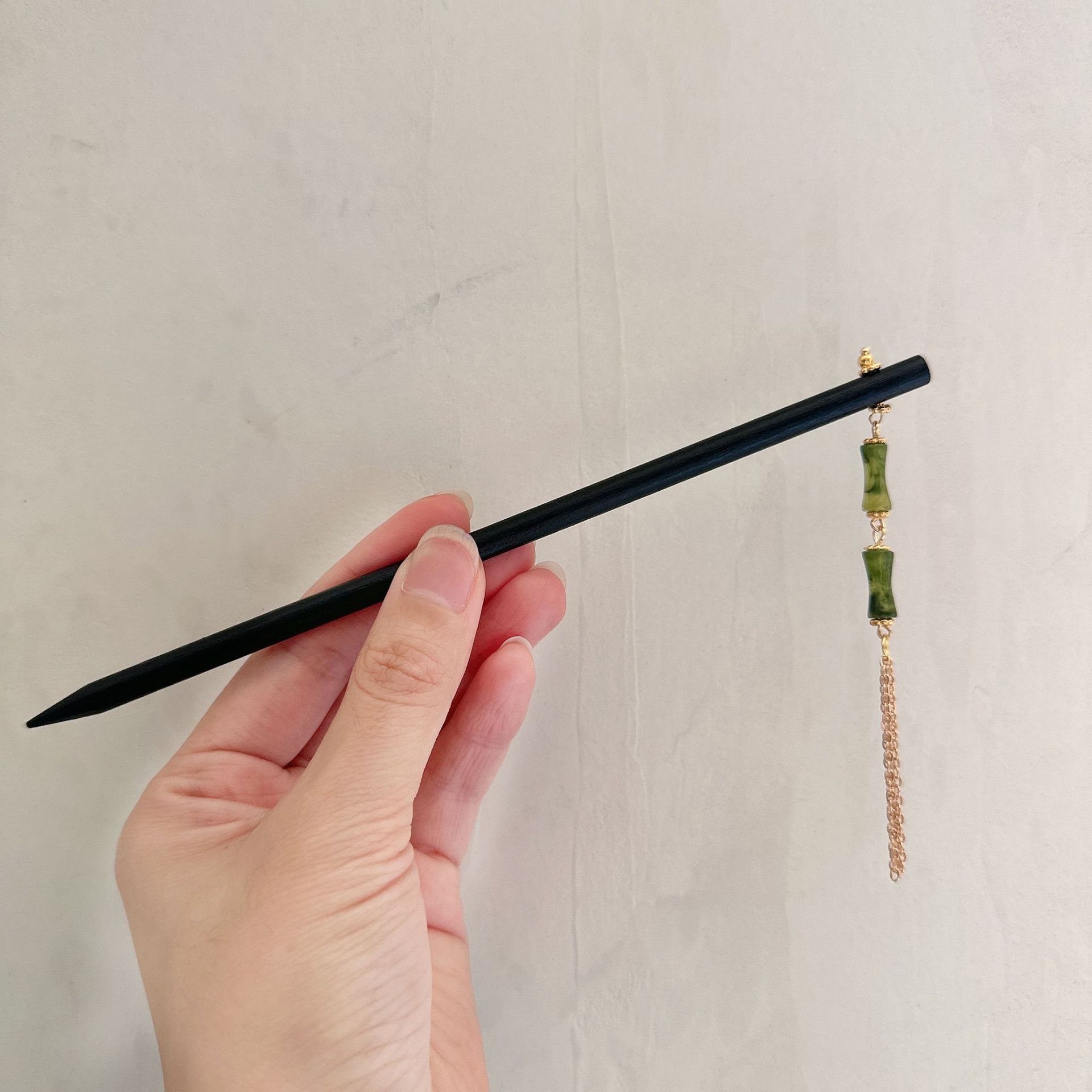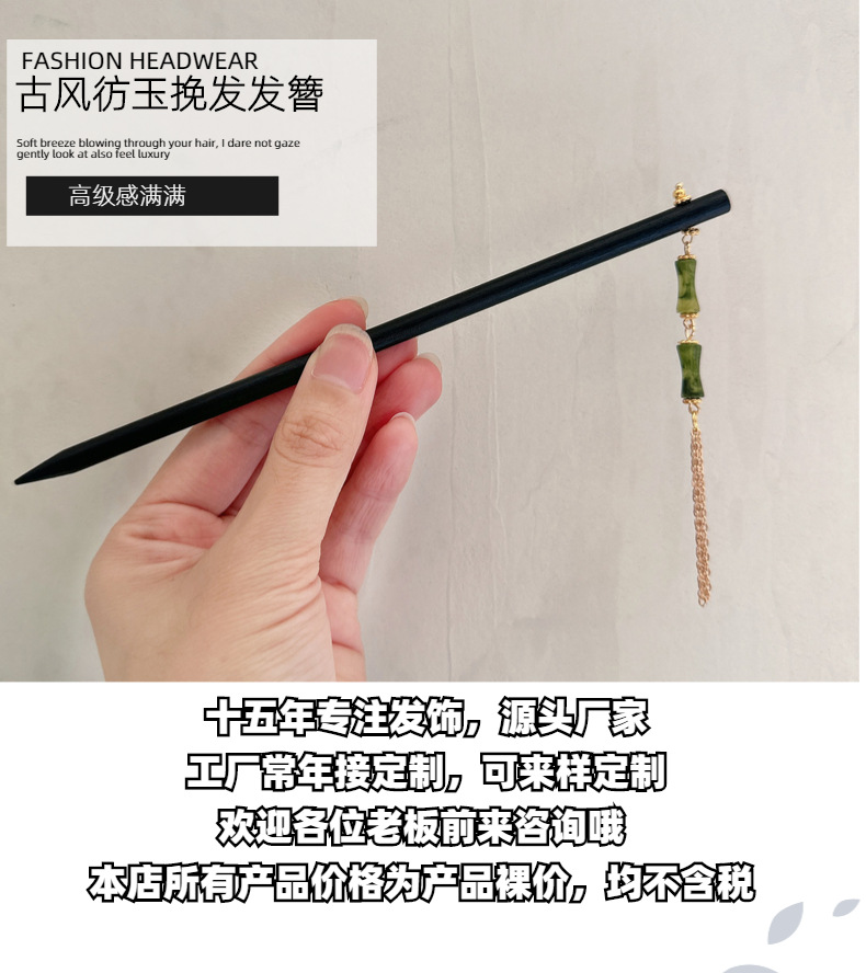 골동품 스타일 대나무 술 나무 머리핀 여자의 간단한 현대 모조 옥 펜던트 중국 스타일 머리핀 우아한 머리 모자스토어 가기
