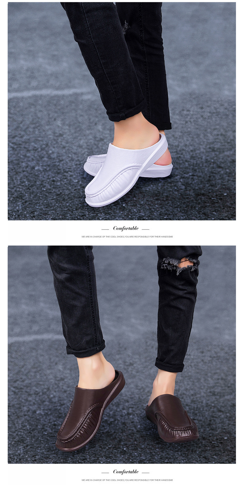 여름 실내 및 실외 착용 홈 남성 패션 부드러운 바닥 반 슬리퍼 남성용 크로스 보더 플러스 사이즈 경량 Baotou 슬리퍼스토어 가기
