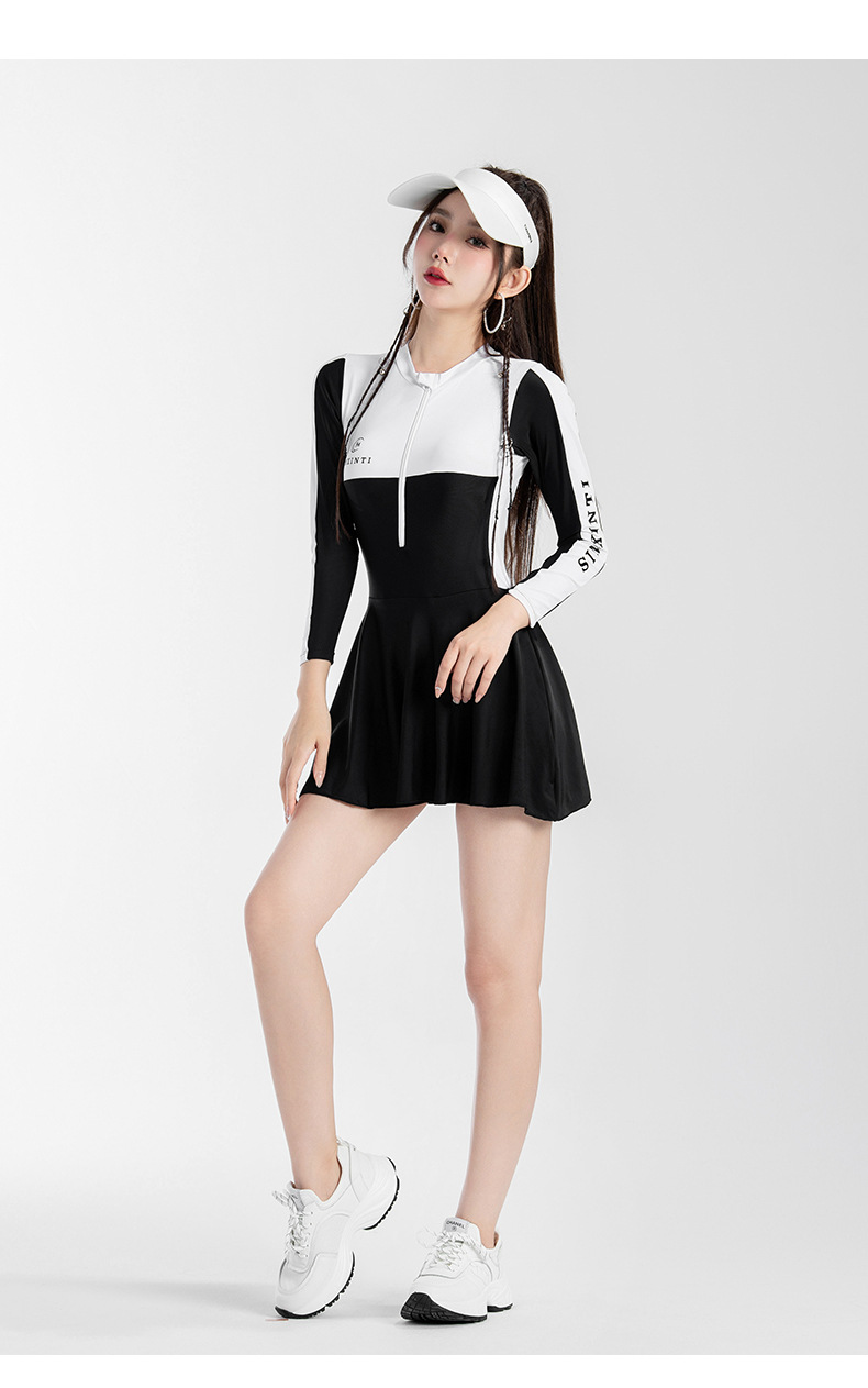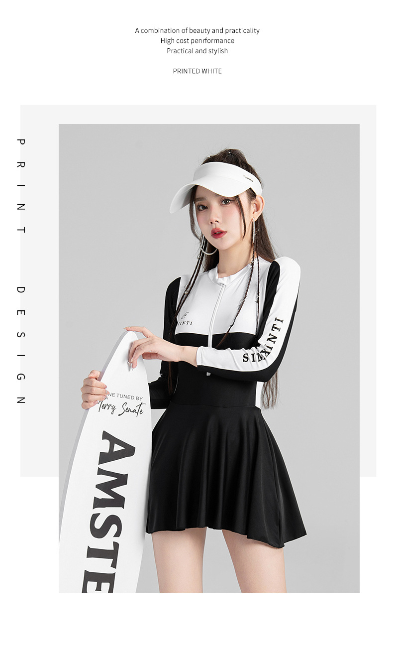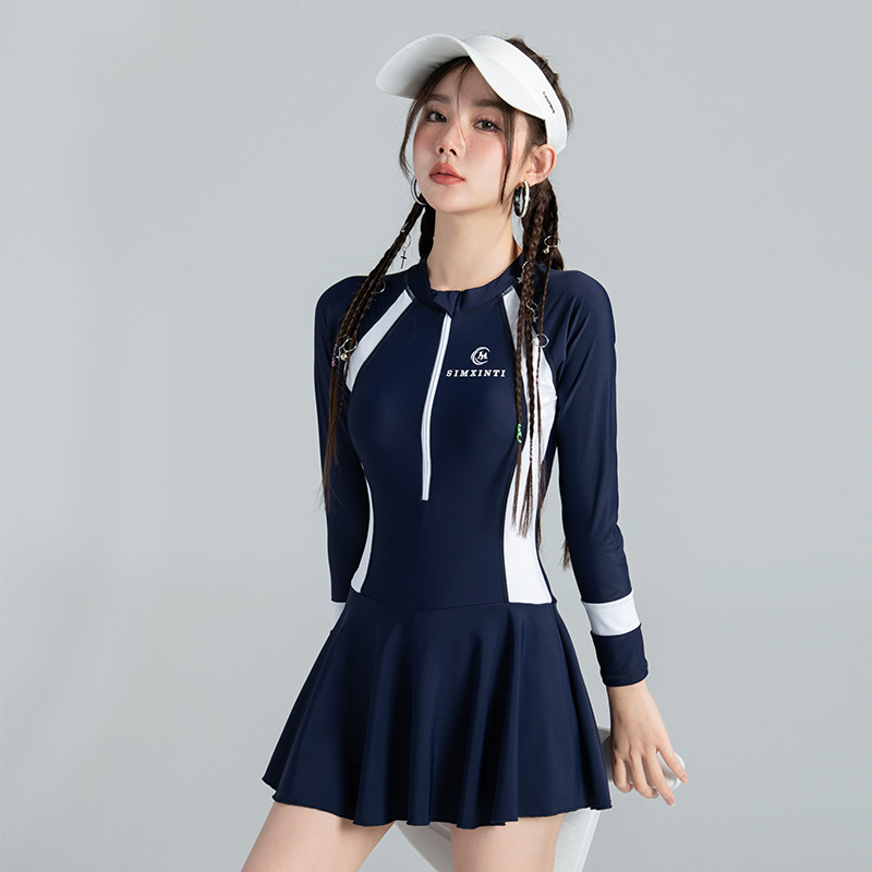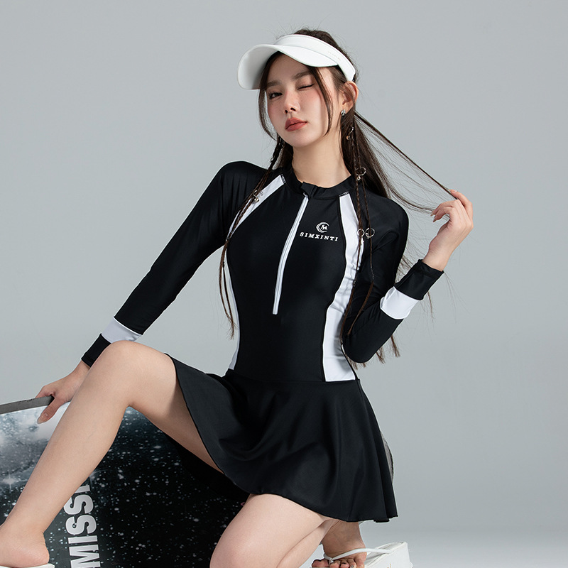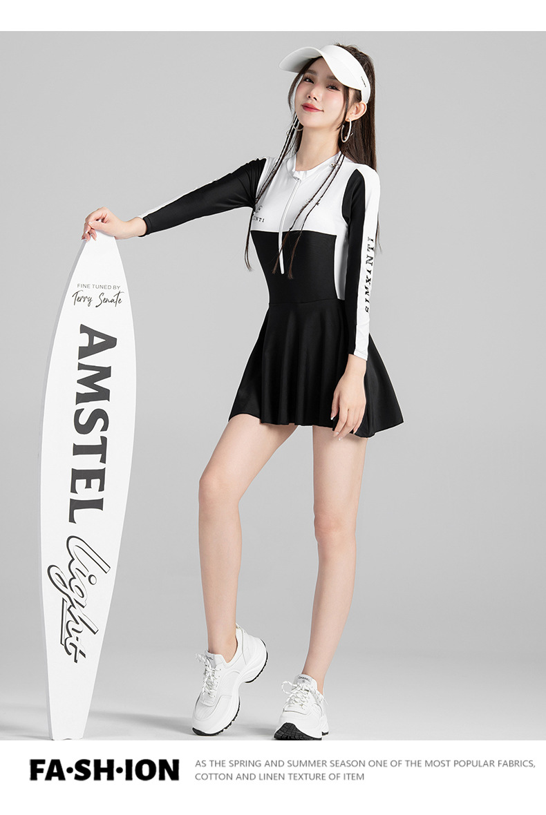 한국식 새 도착 수영복 여성 스커트 배꼽 덮은 슬리밍 보수 장소매 학생 스포츠 레저 서핑 잠수복
