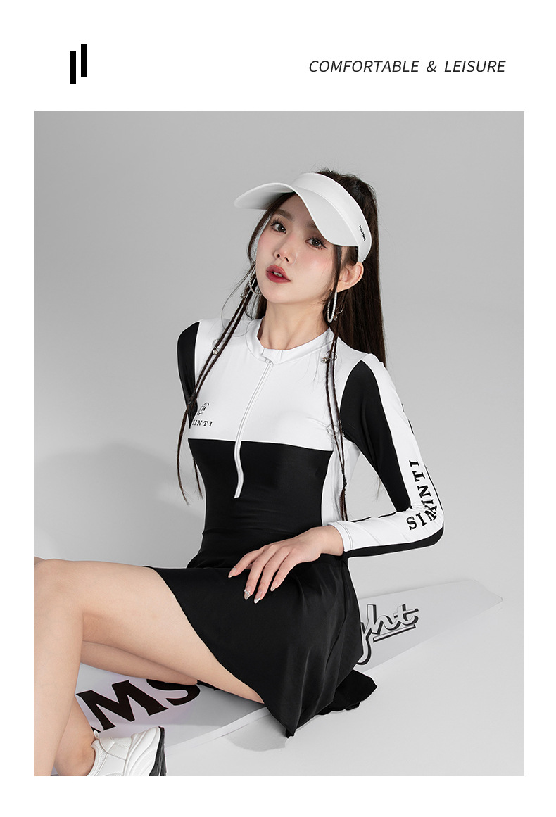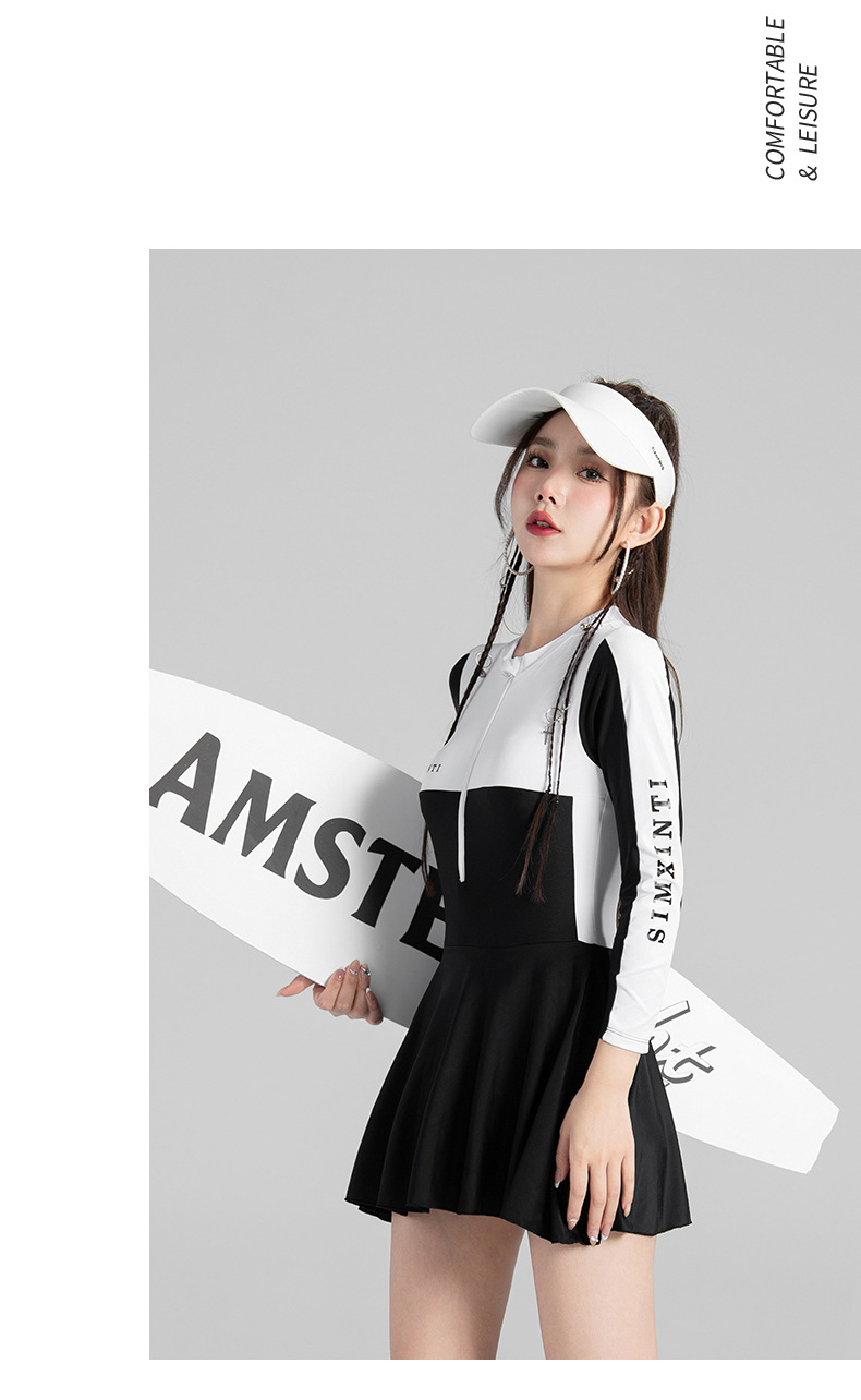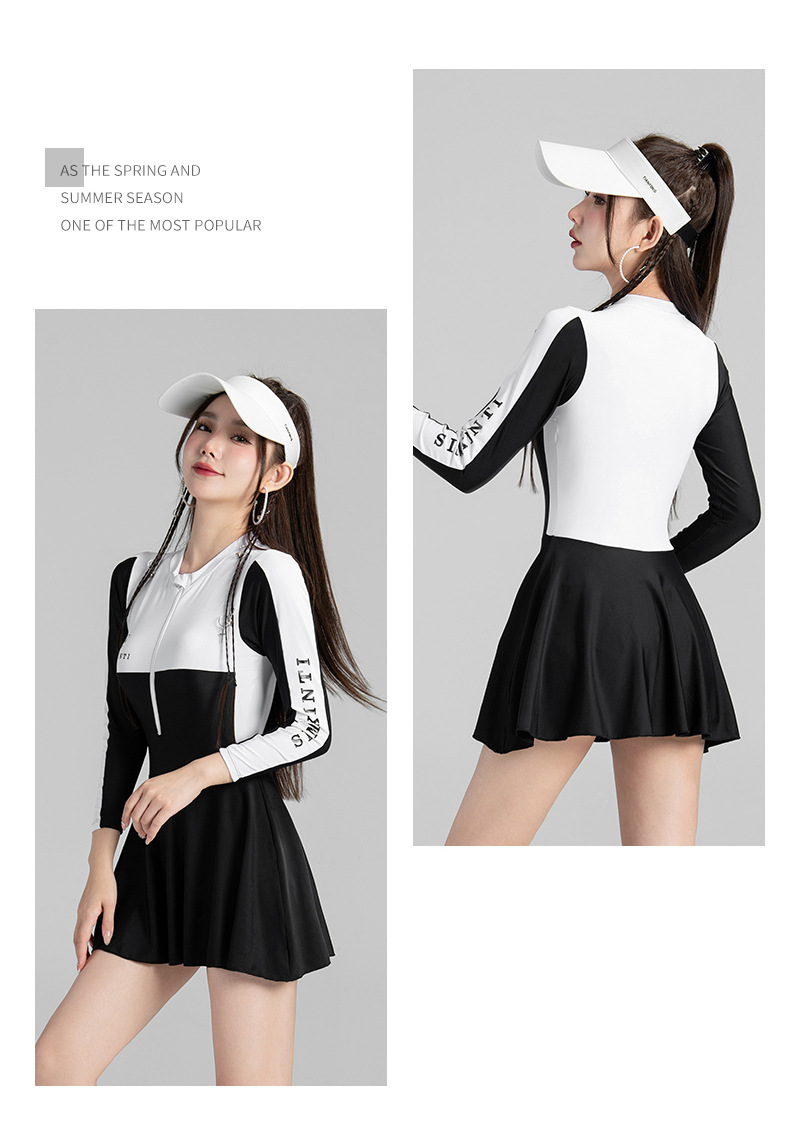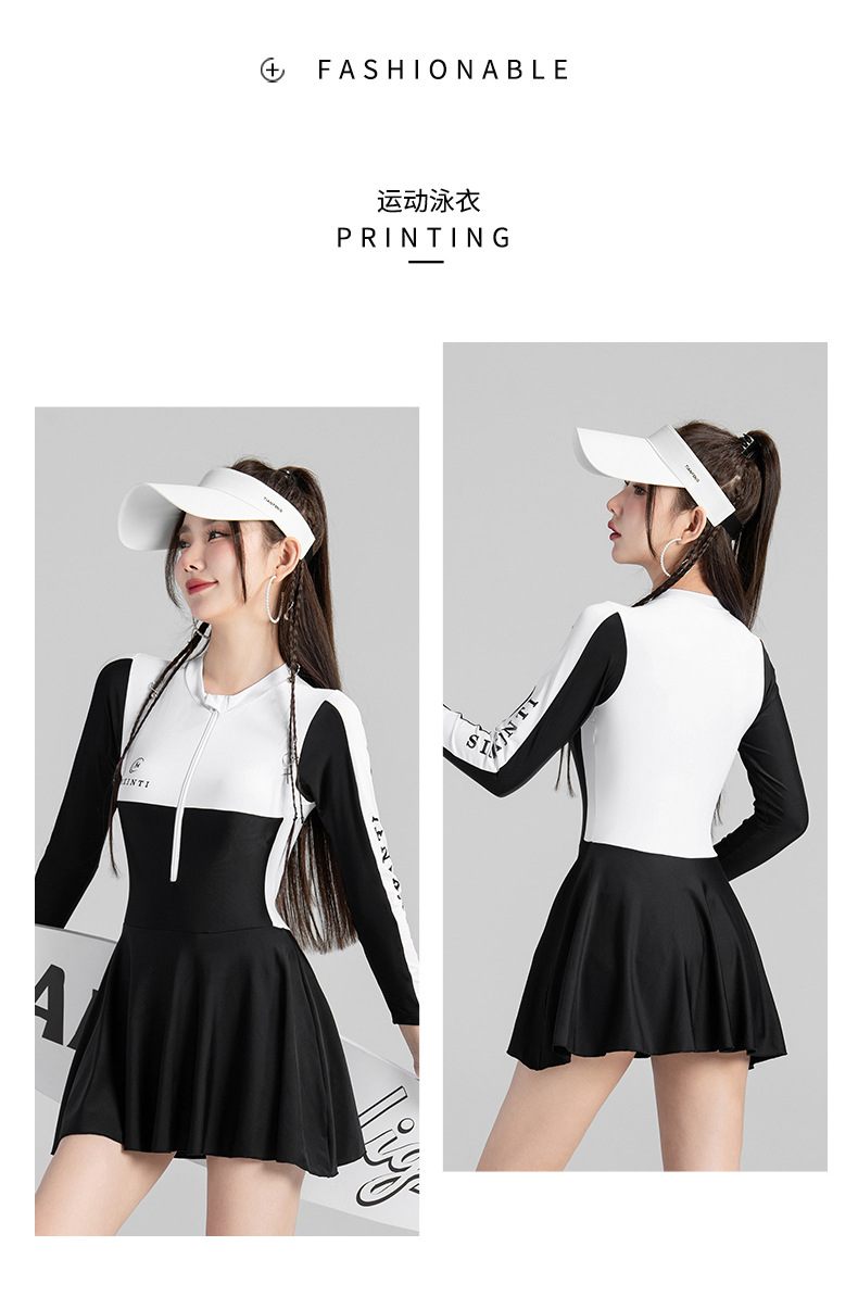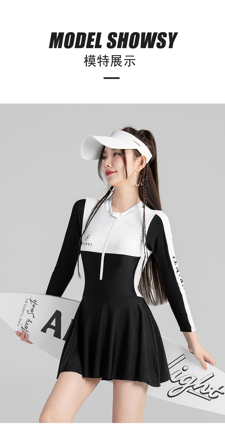 한국식 새 도착 수영복 여성 스커트 배꼽 덮은 슬리밍 보수 장소매 학생 스포츠 레저 서핑 잠수복