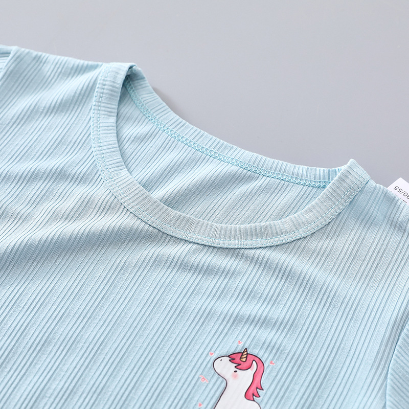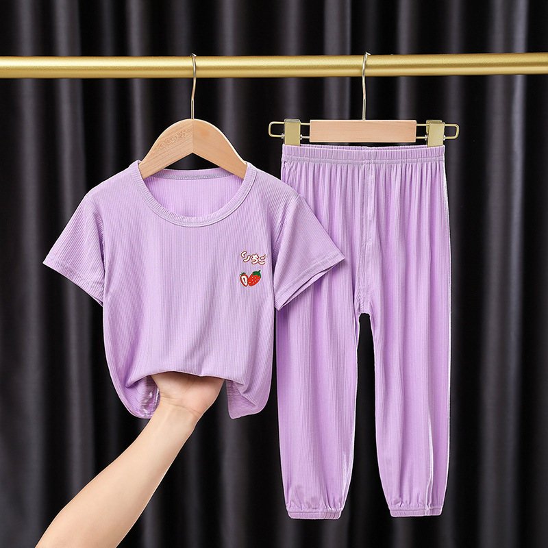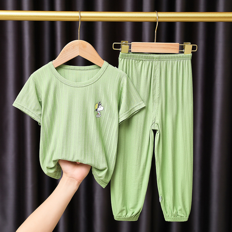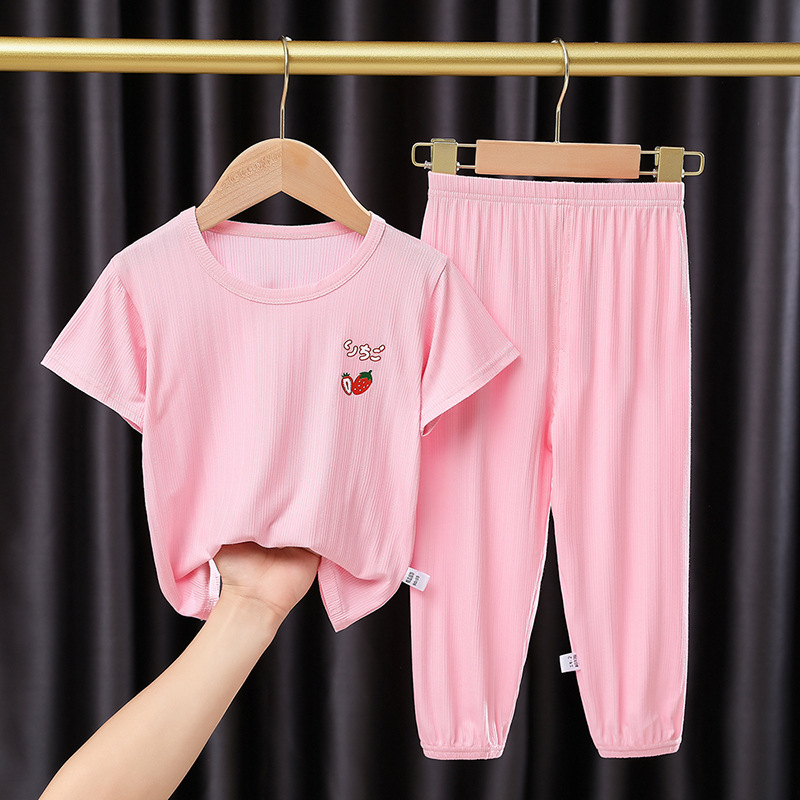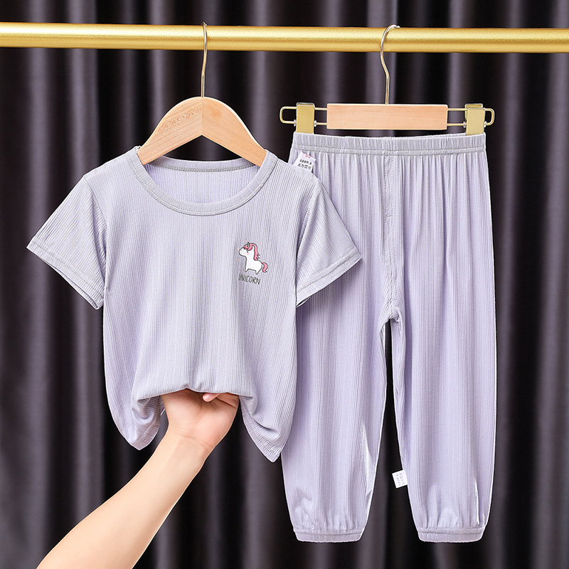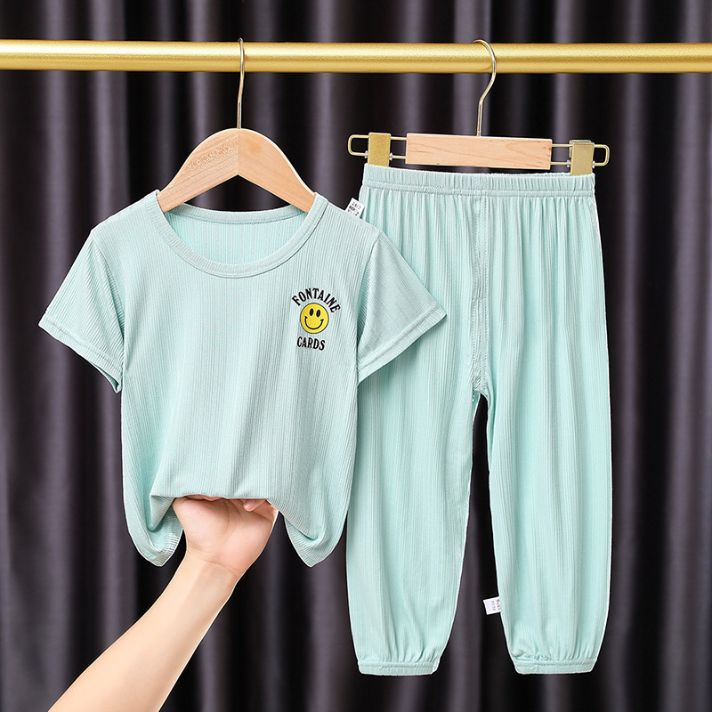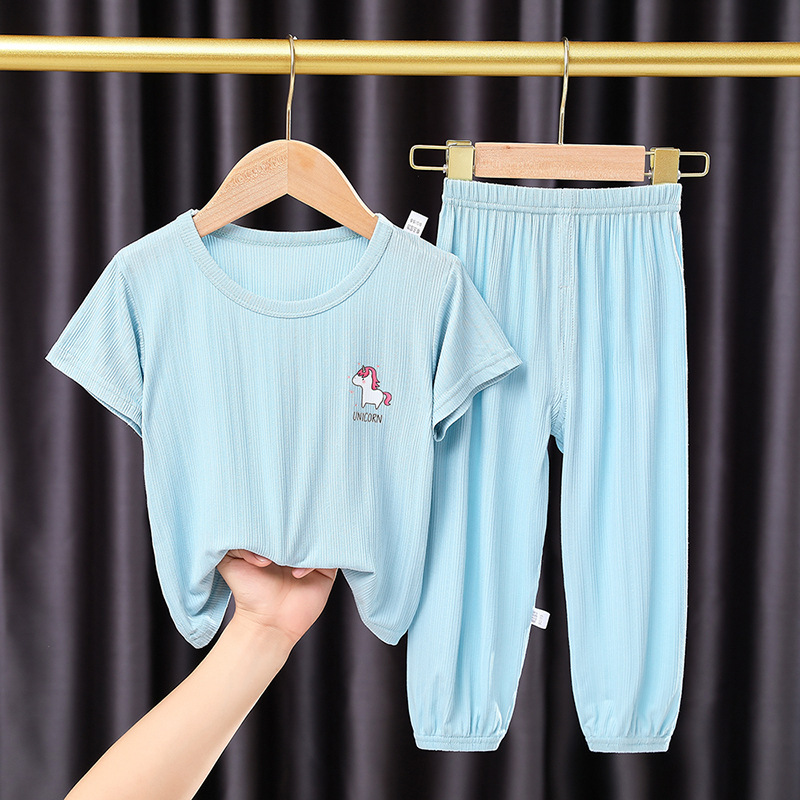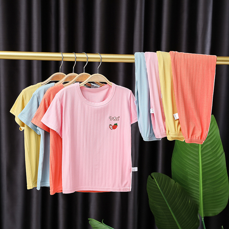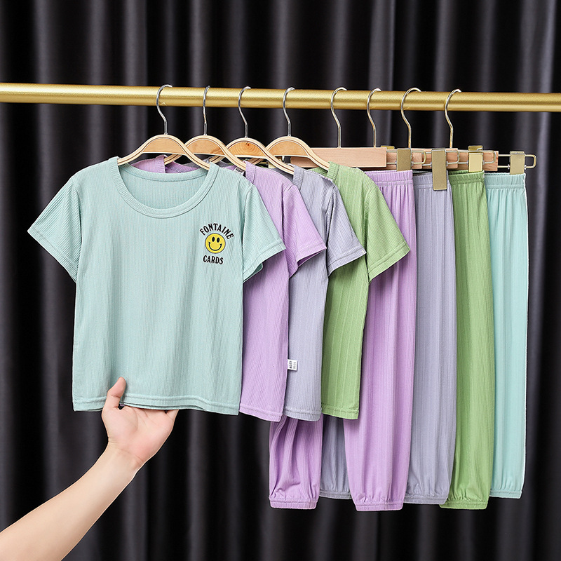 어린이 잠옷 세트 여름 얇은 스타일 소년 소녀 가정복 큰 어린이 티셔츠 9 점 캐주얼 바지 아기 에어컨 옷스토어 가기