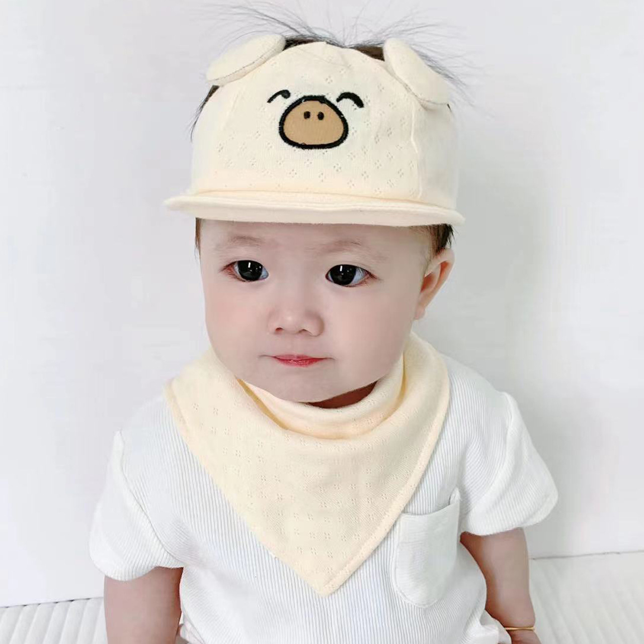 • 개별 모자 0-10 개월 36-44cm-베이지-돼지 벨트