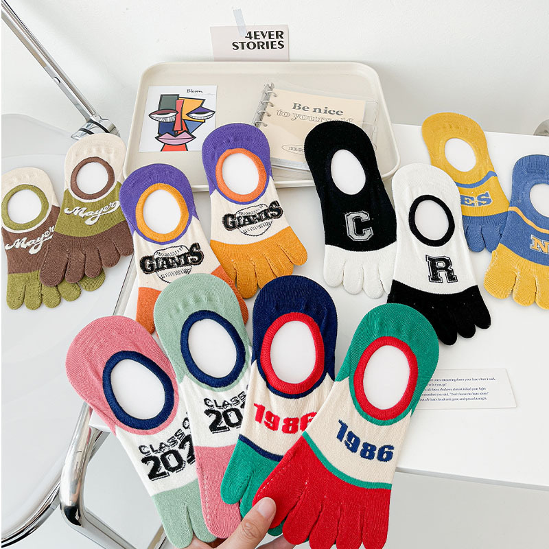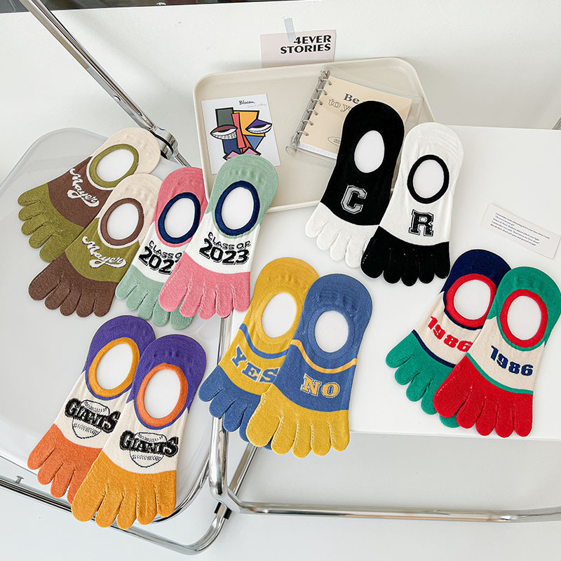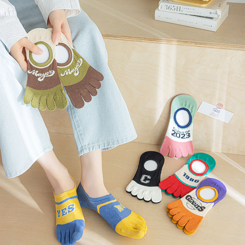 비대칭 다섯 손가락 분할 발가락 편지 보트 양말 여성용 여름 모든 경기 귀여운 실리콘 미끄럼 방지 스텔스 양말스토어 가기