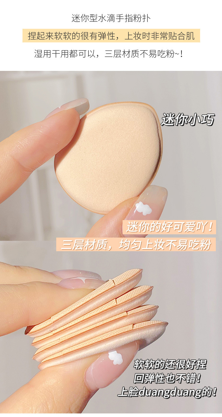 징루이 GECOMO 물방울 썸 파우더 퍼프 미니 핑거팁 파우더 퍼프는 습식 및 건식 사용이 가능하며, 파우더를 흡수하는 경향이 없으며, 2개들이 팩입니다.