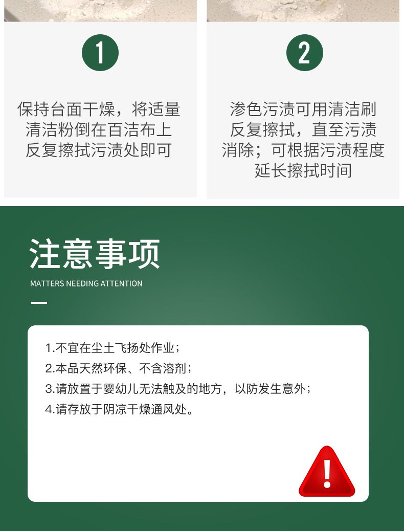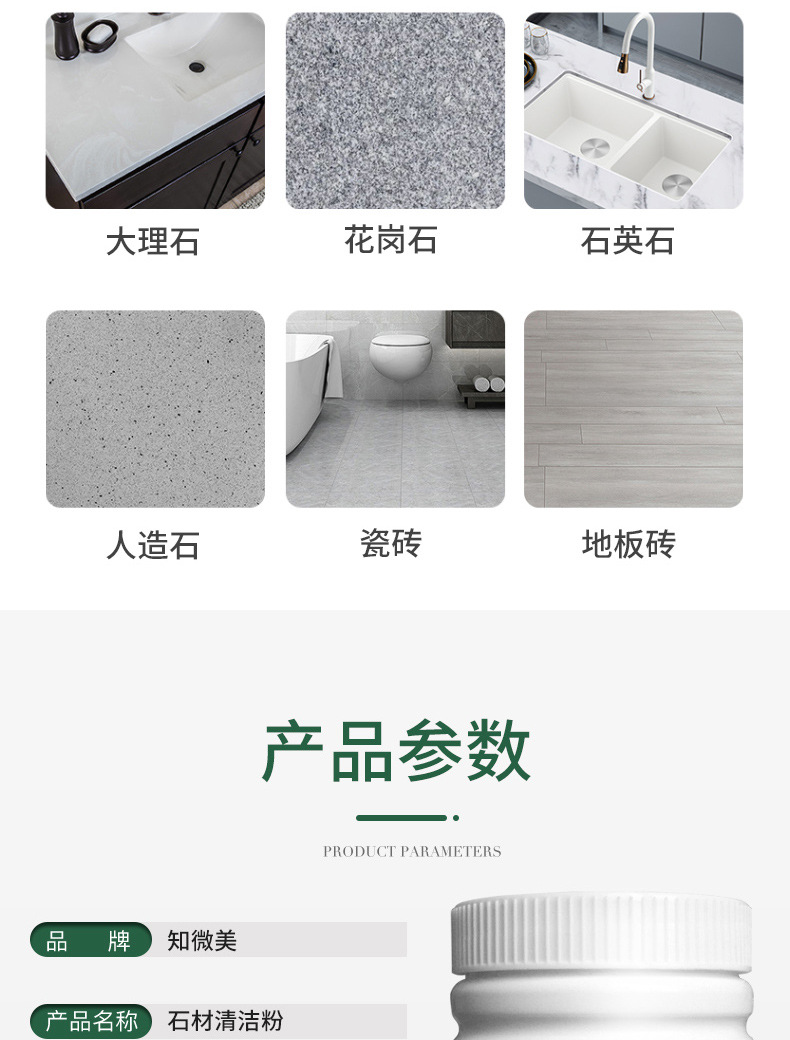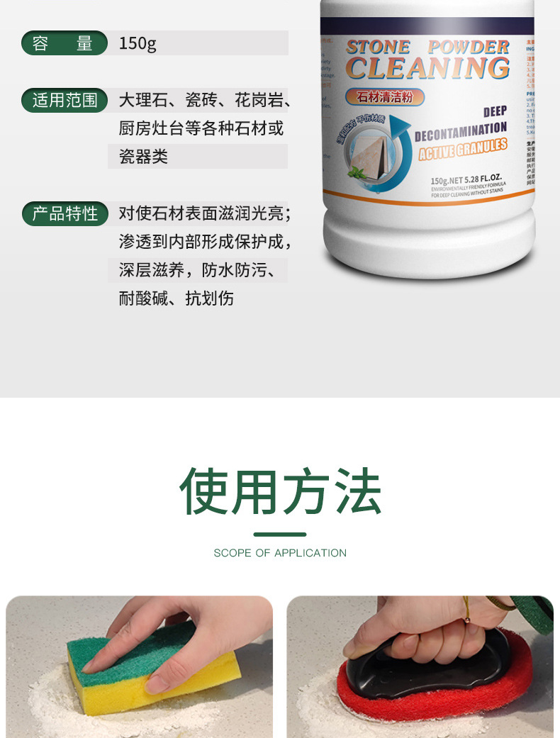 돌 청소 분말 가정용 주방 석영 돌 대리석 타일 바닥 청소 강력한 오염 제거 연마 클리너
