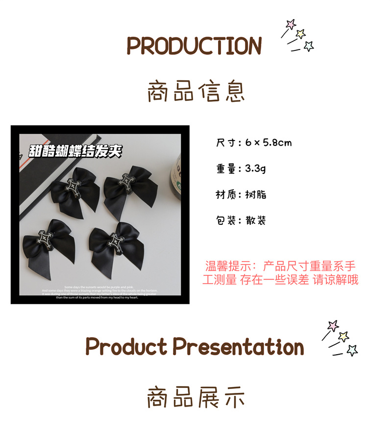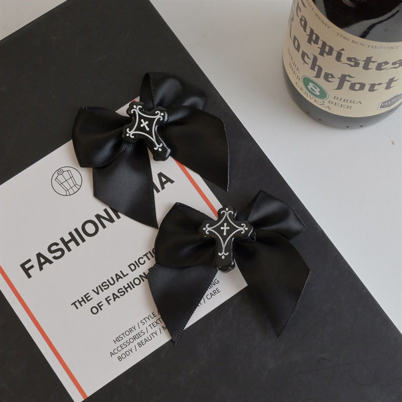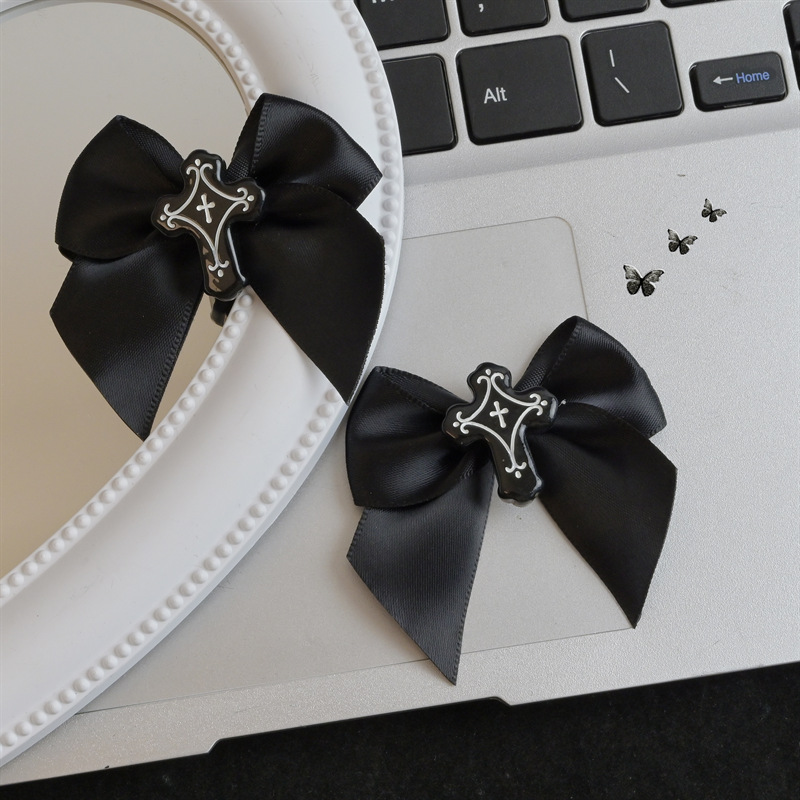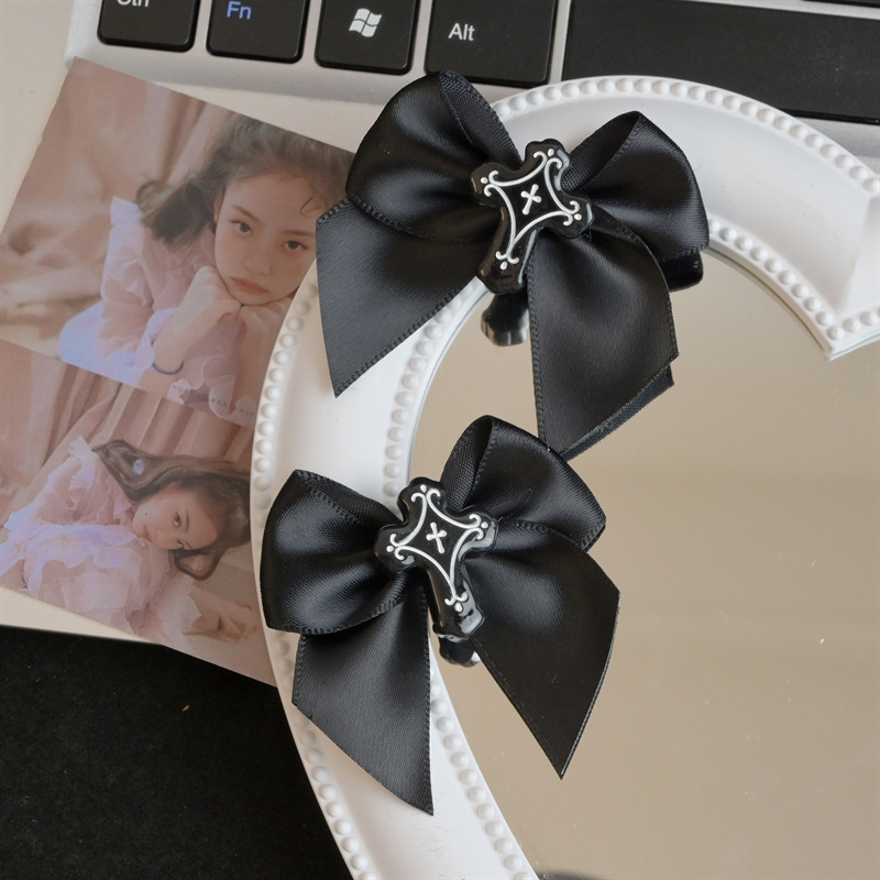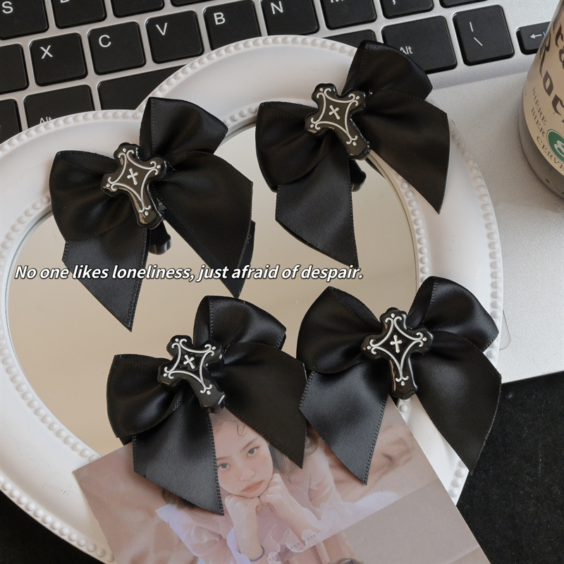 로리타 머리 장식 멋진 하드 펑크 스타일 로리타 크로스 보우 머리핀 jk 블랙 달콤한 나비 헤어 액세서리