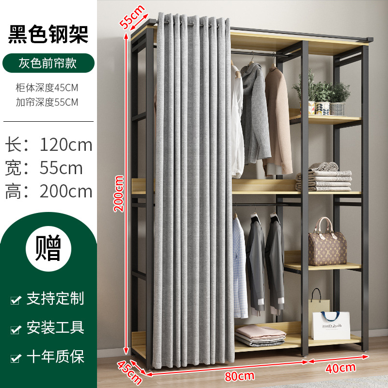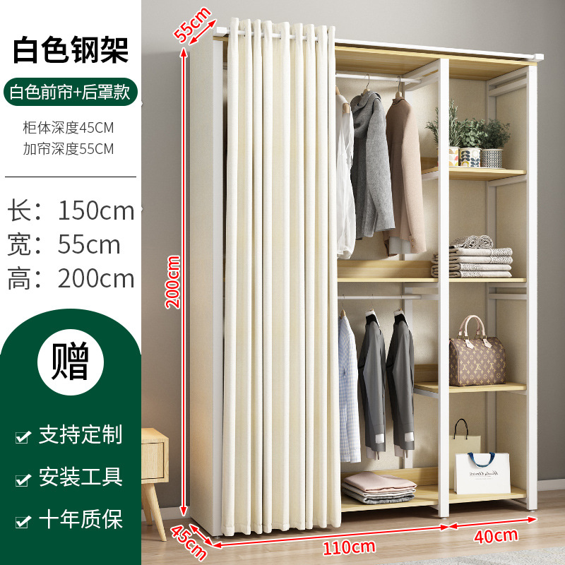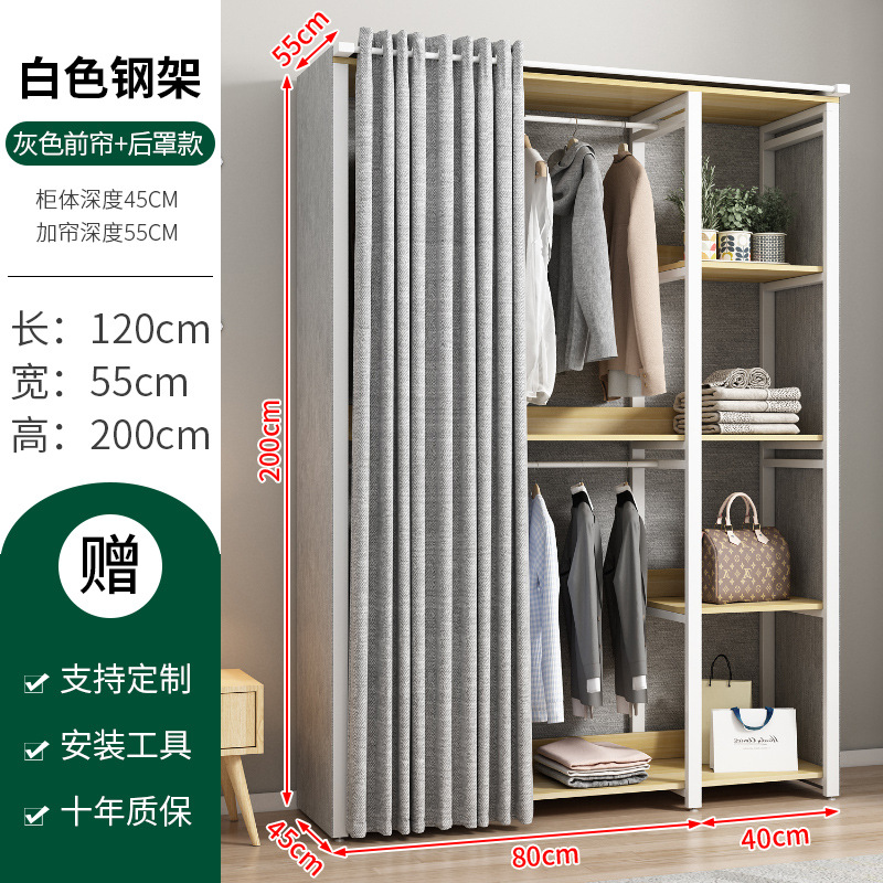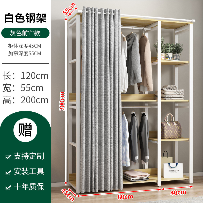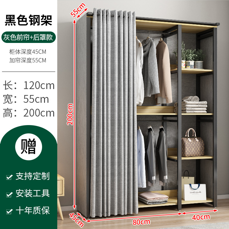 간단한 옷장 현대 간단한 가정용 침실 철 천 커튼 도어 행거 보관 캐비닛 임대실 작은 아파트 옷장스토어 가기