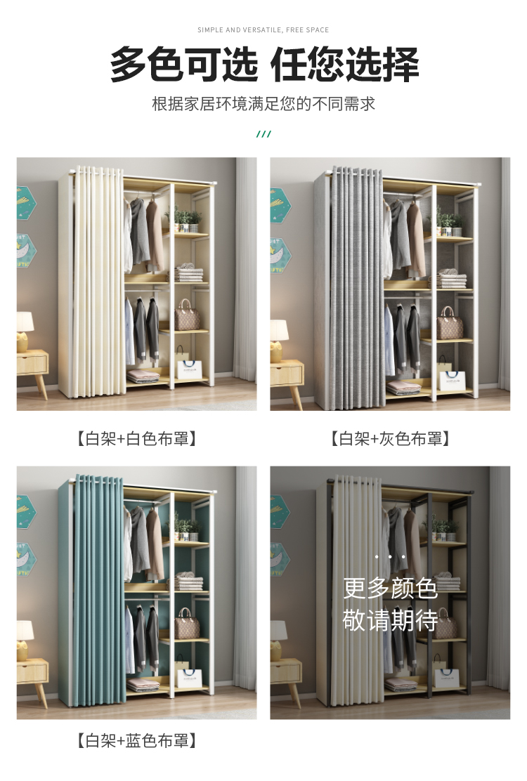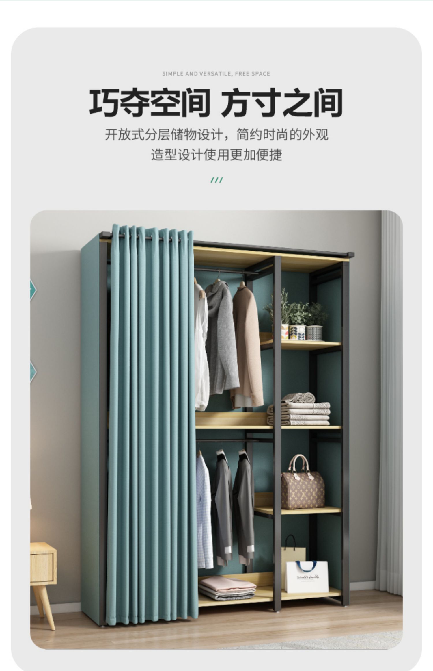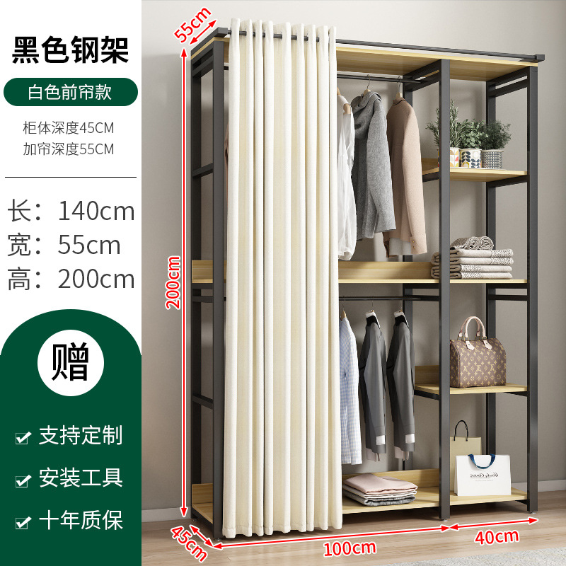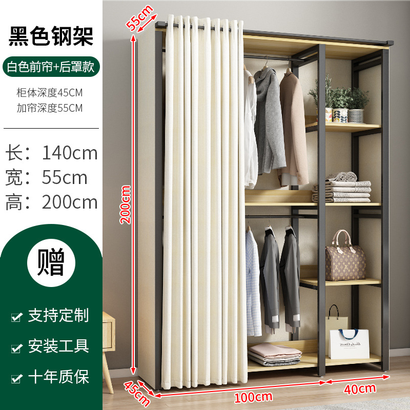 간단한 옷장 현대 간단한 가정용 침실 철 천 커튼 도어 행거 보관 캐비닛 임대실 작은 아파트 옷장스토어 가기