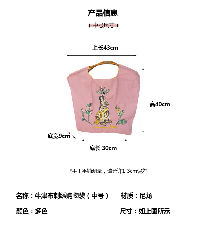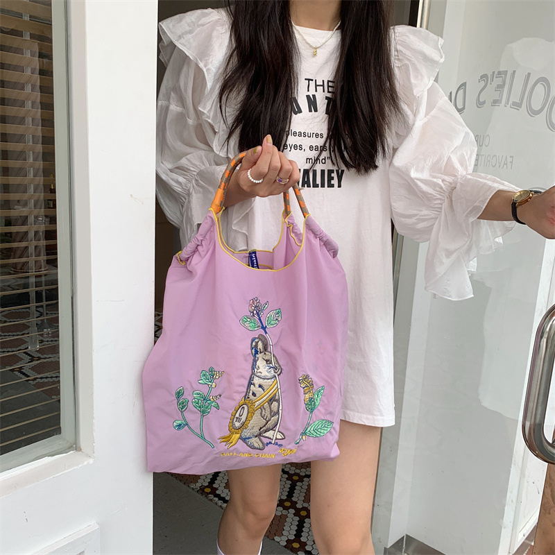 일본 수제 볼 체인 친환경 쇼핑백 나일론 자수 핸드 캔버스 가방 나일론 쇼핑백