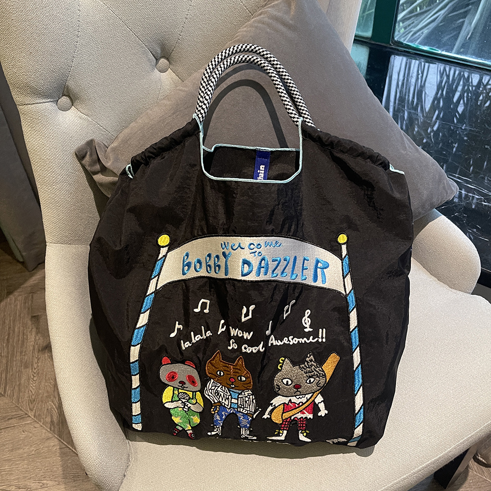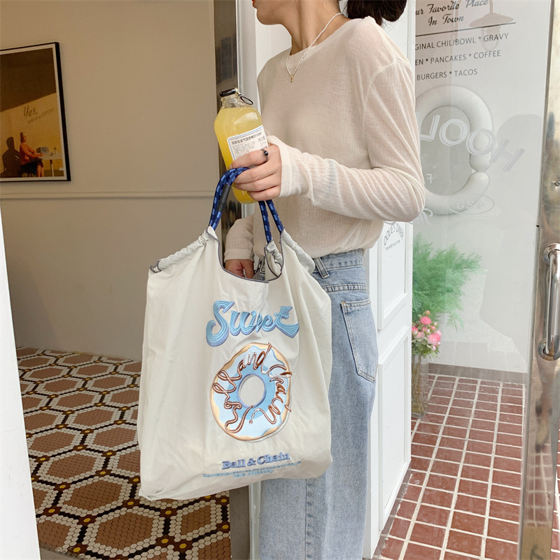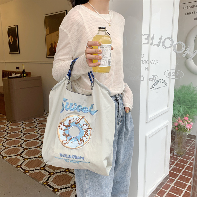 일본 수제 볼 체인 친환경 쇼핑백 나일론 자수 핸드 캔버스 가방 나일론 쇼핑백스토어 가기