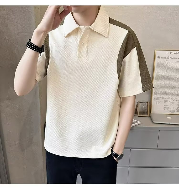 한국 스타일 여름 탑 느슨한 옷깃 짧은 소매 폴로 셔츠 남자의 유행 잘 생긴 대조 색상 스티칭 티셔츠 통기성 반 소매스토어 가기