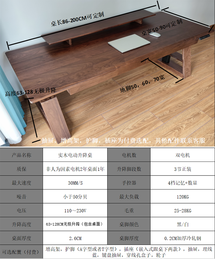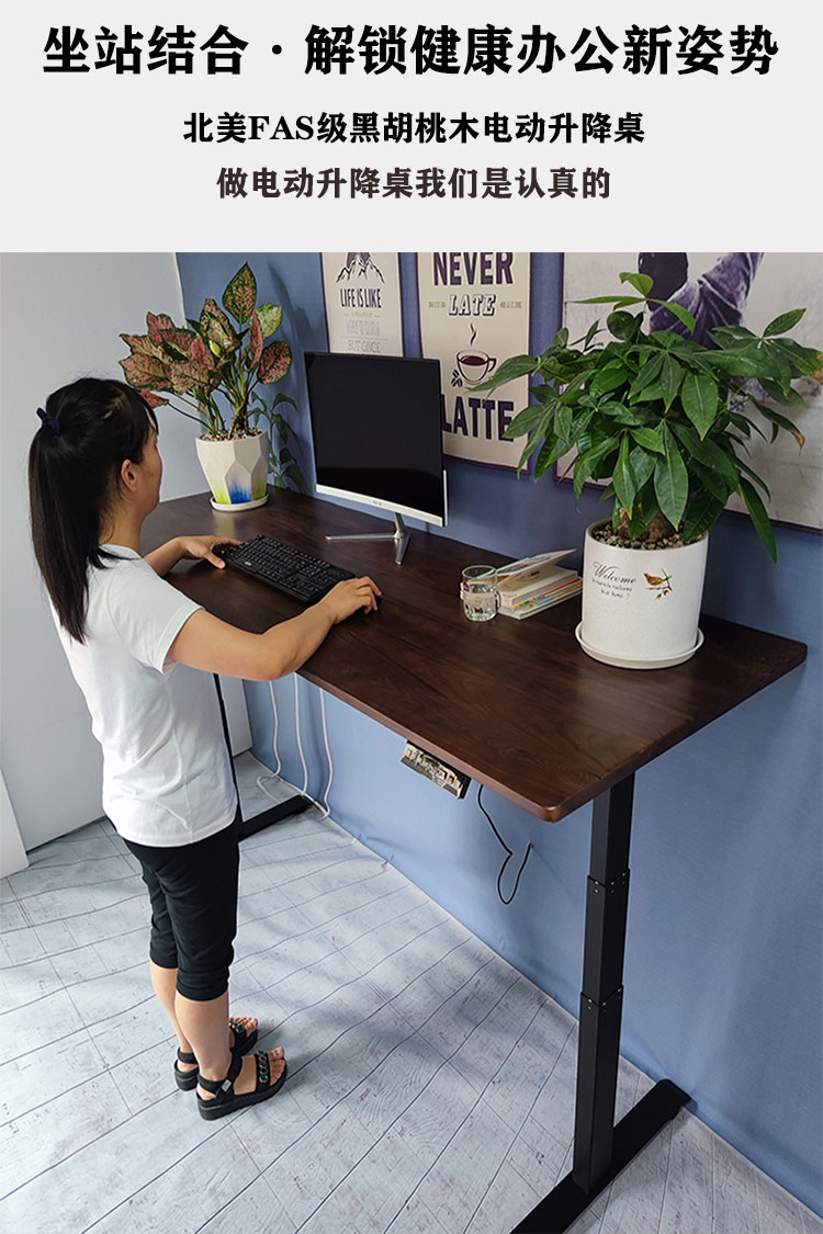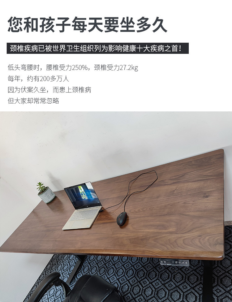 단단한 나무 전기 리프팅 테이블 작업대 블랙 호두 어린이 학습 서랍 책상 사무실 E 스포츠 컴퓨터 책상