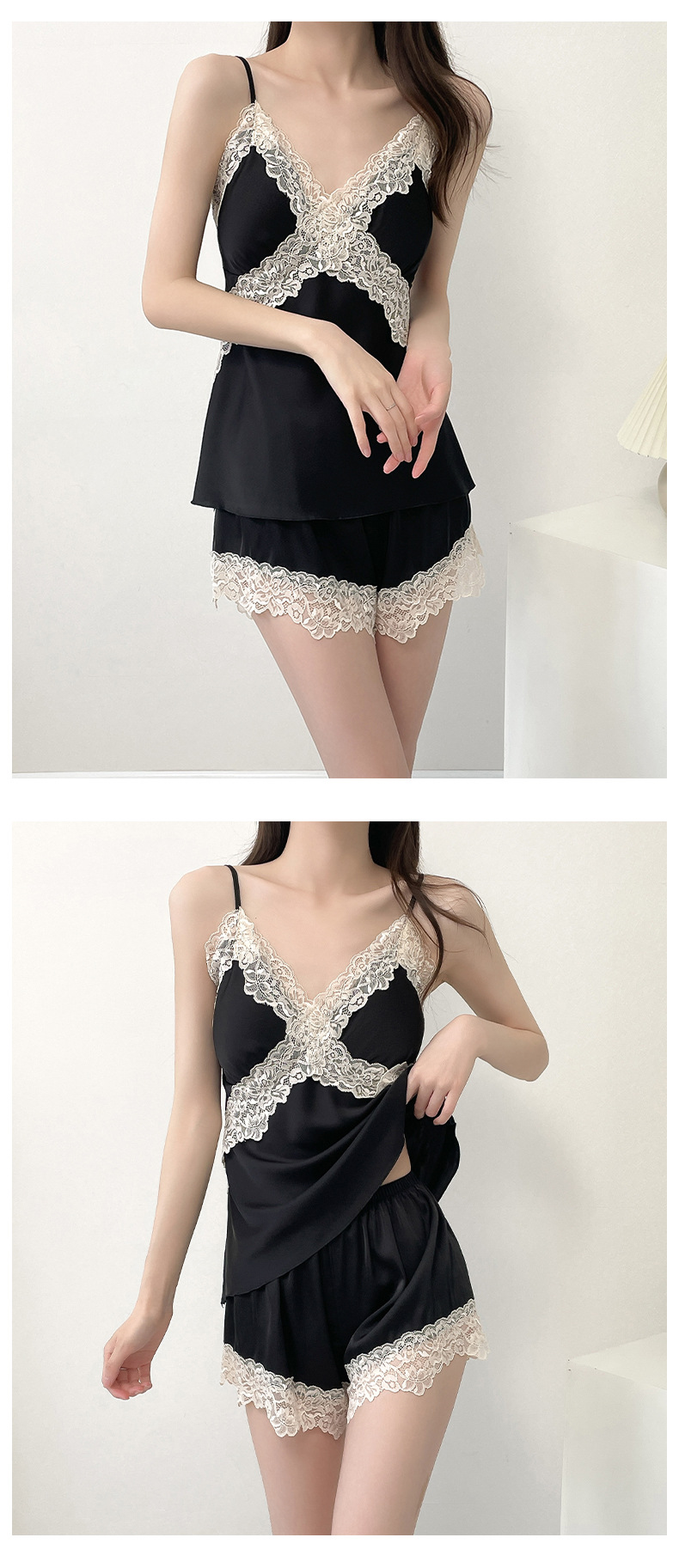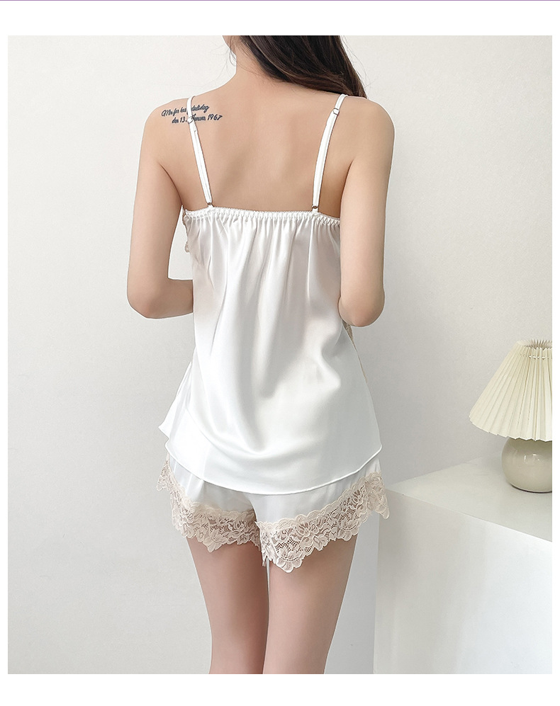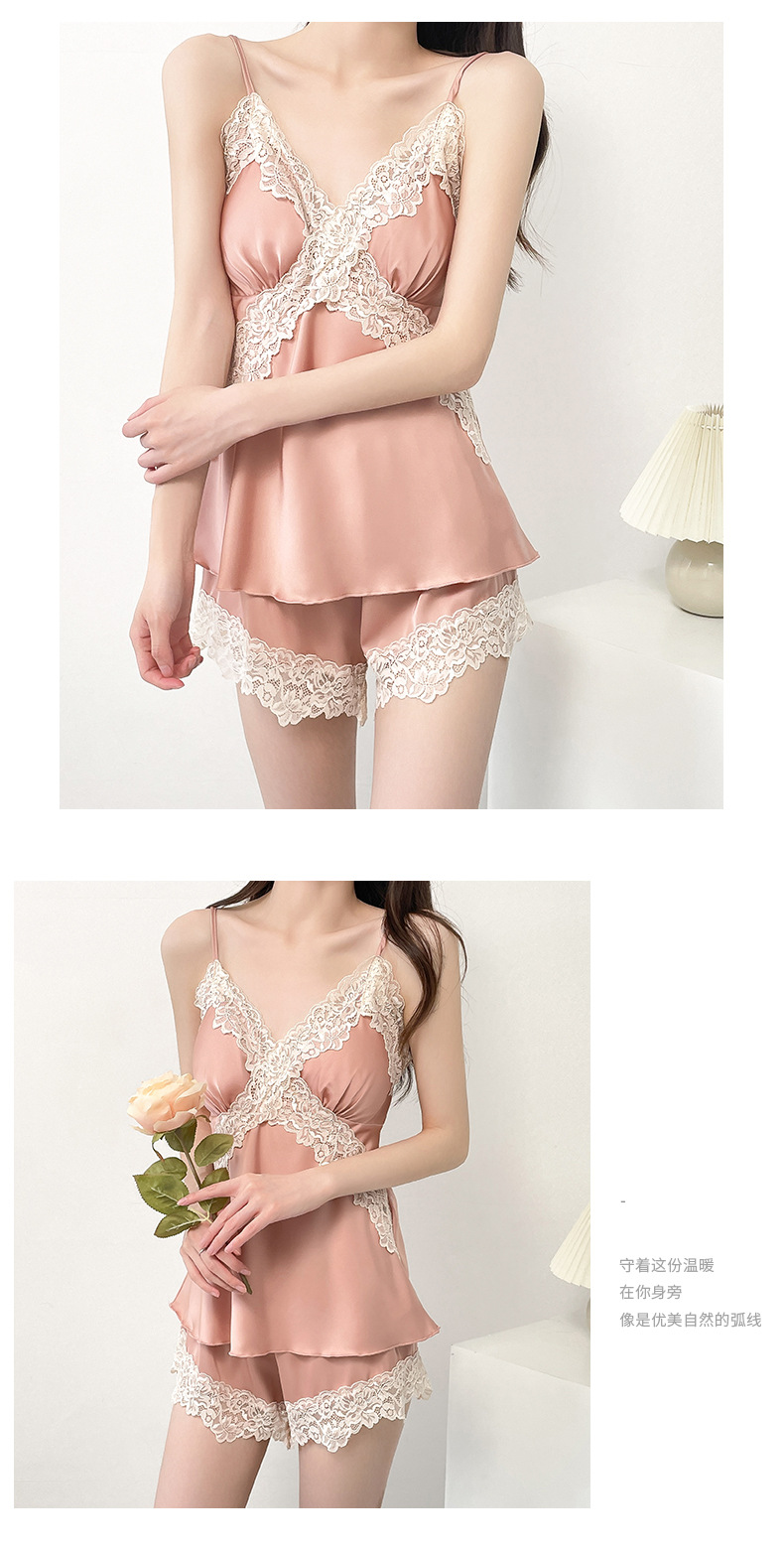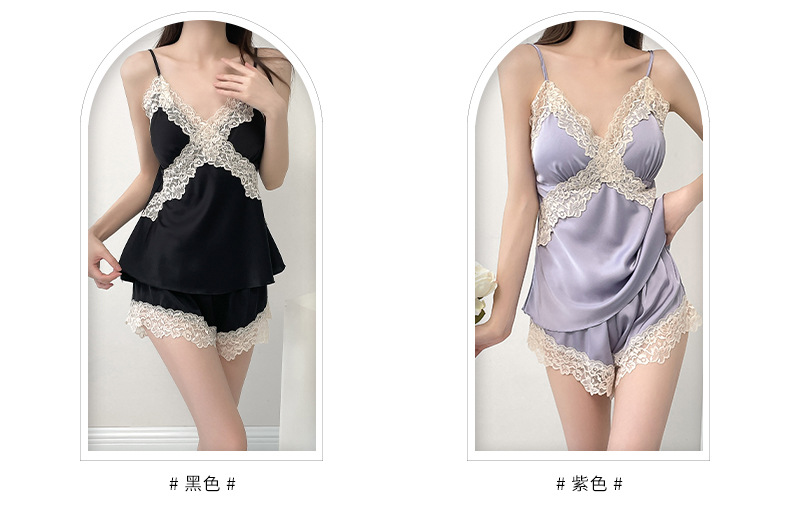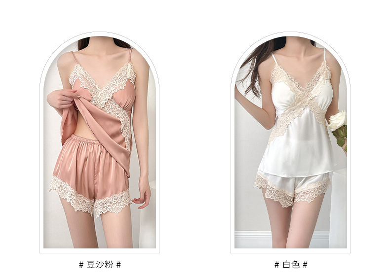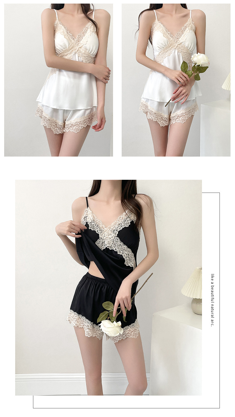 여성 여름 시원한 캐주얼 홈웨어 섹시한 딥 V 여성 얇은 민소매 슬립 반바지 홈웨어 세트