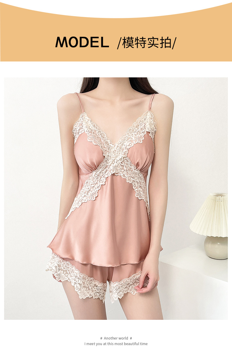 여성 여름 시원한 캐주얼 홈웨어 섹시한 딥 V 여성 얇은 민소매 슬립 반바지 홈웨어 세트스토어 가기