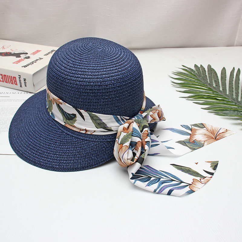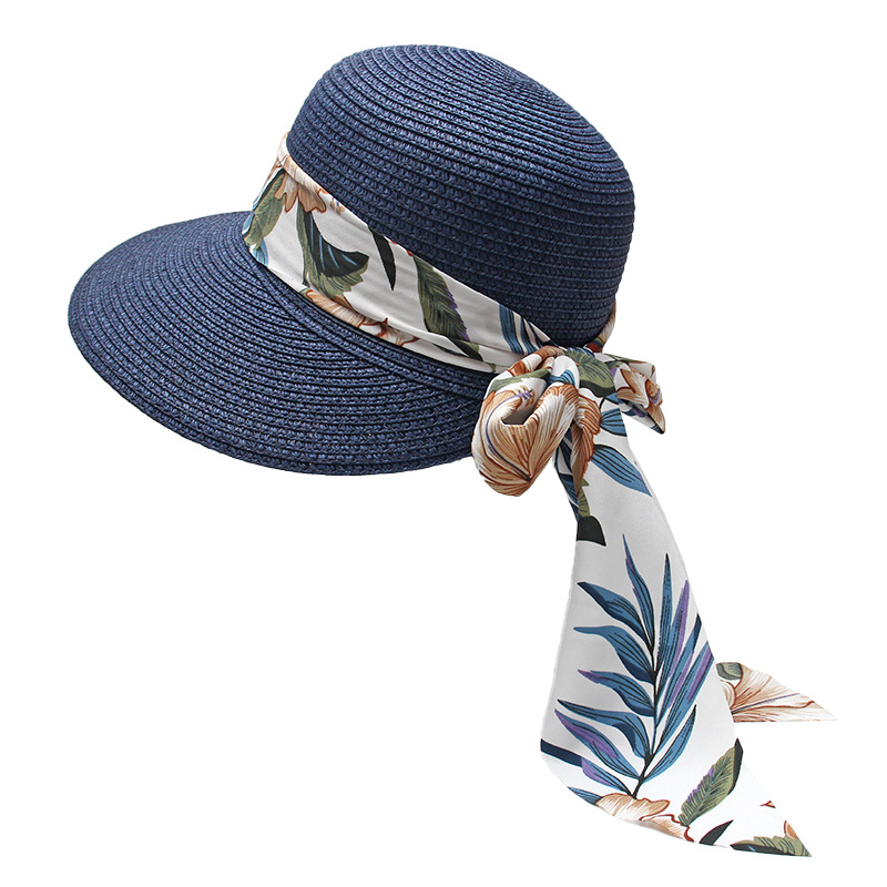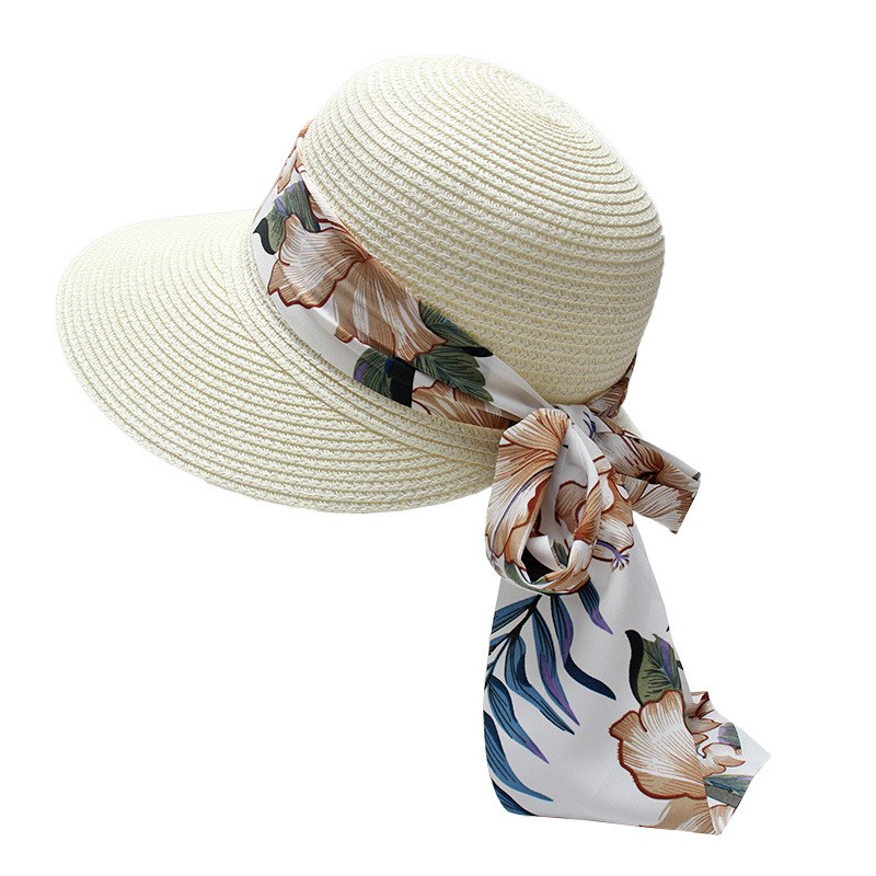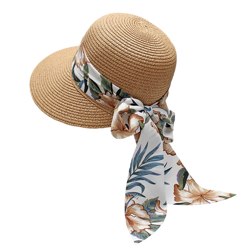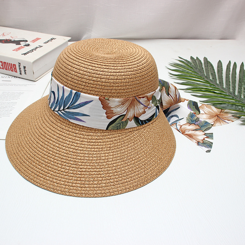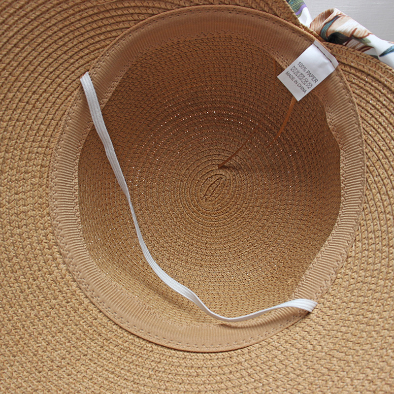 프린트 리본 차양 모자 여성용 여름 패션 모든 경기 밀짚 모자 통근을위한 간단한 큰 챙 자외선 차단제 모자스토어 가기