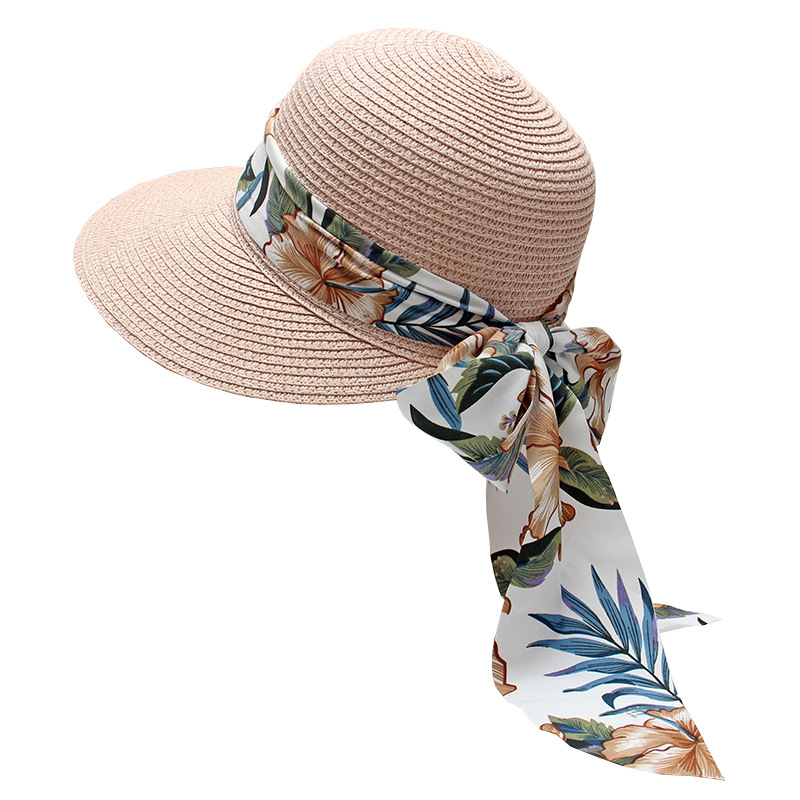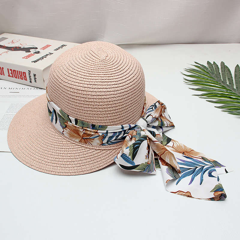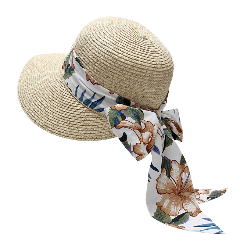 프린트 리본 차양 모자 여성용 여름 패션 모든 경기 밀짚 모자 통근을위한 간단한 큰 챙 자외선 차단제 모자