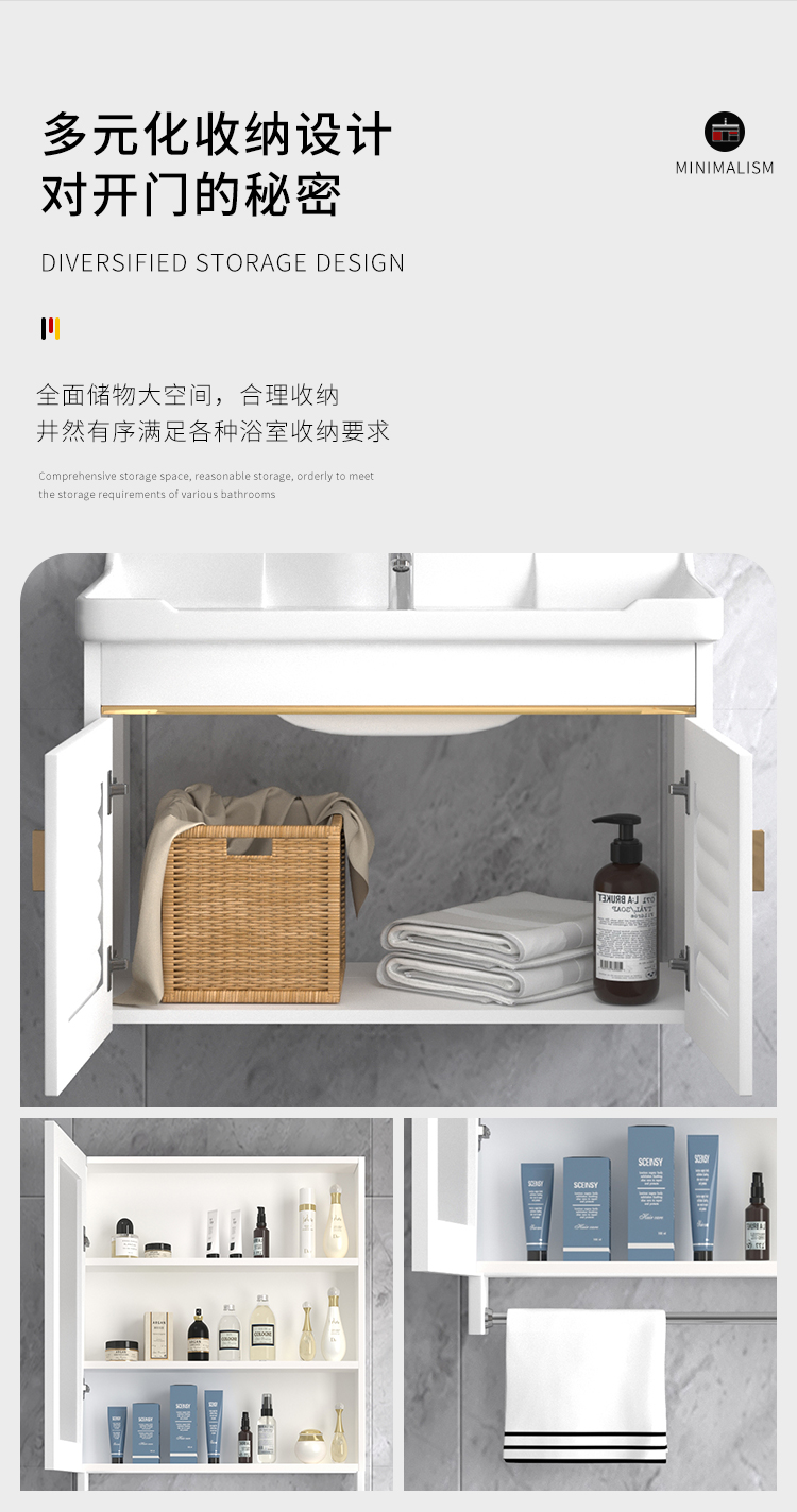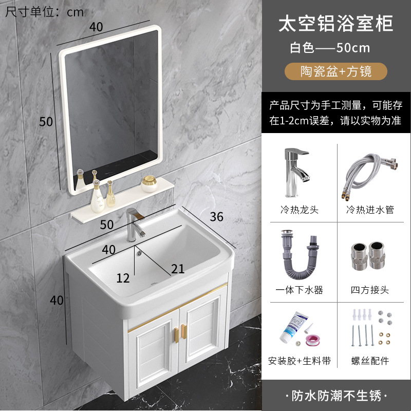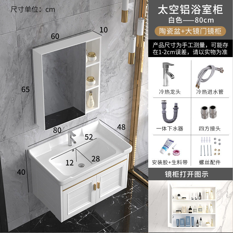 공간 알루미늄 욕실 캐비닛 콤비네이션 욕실 세라믹 일체형 세면대 세면대 세면대 세면대 소형 아파트스토어 가기