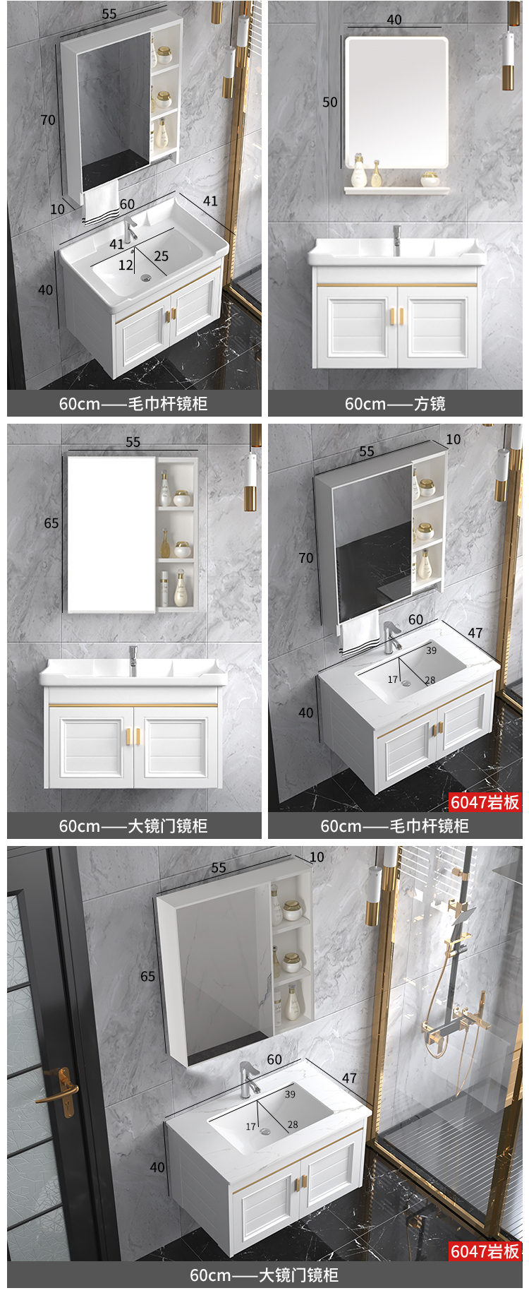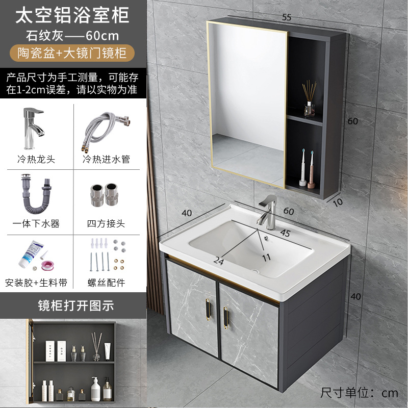 • 스톤 그레인 그레이 교수형 캐비닛 60x48cm 암석 플레이트 분지 전체 세트 + [미러 도어 미러 캐비닛]]