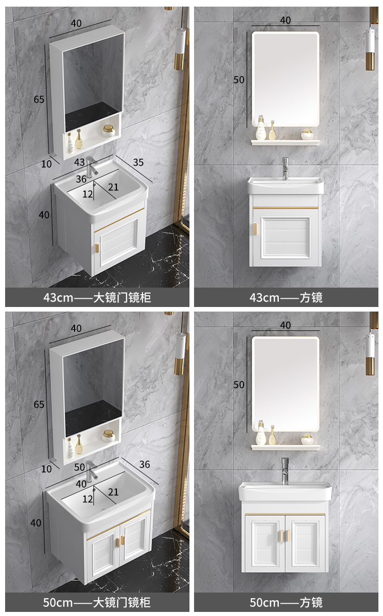 • 플래티넘 걸이 캐비닛 43cm 세라믹 분지 풀 세트 + [미러 도어 미러 캐비닛]]