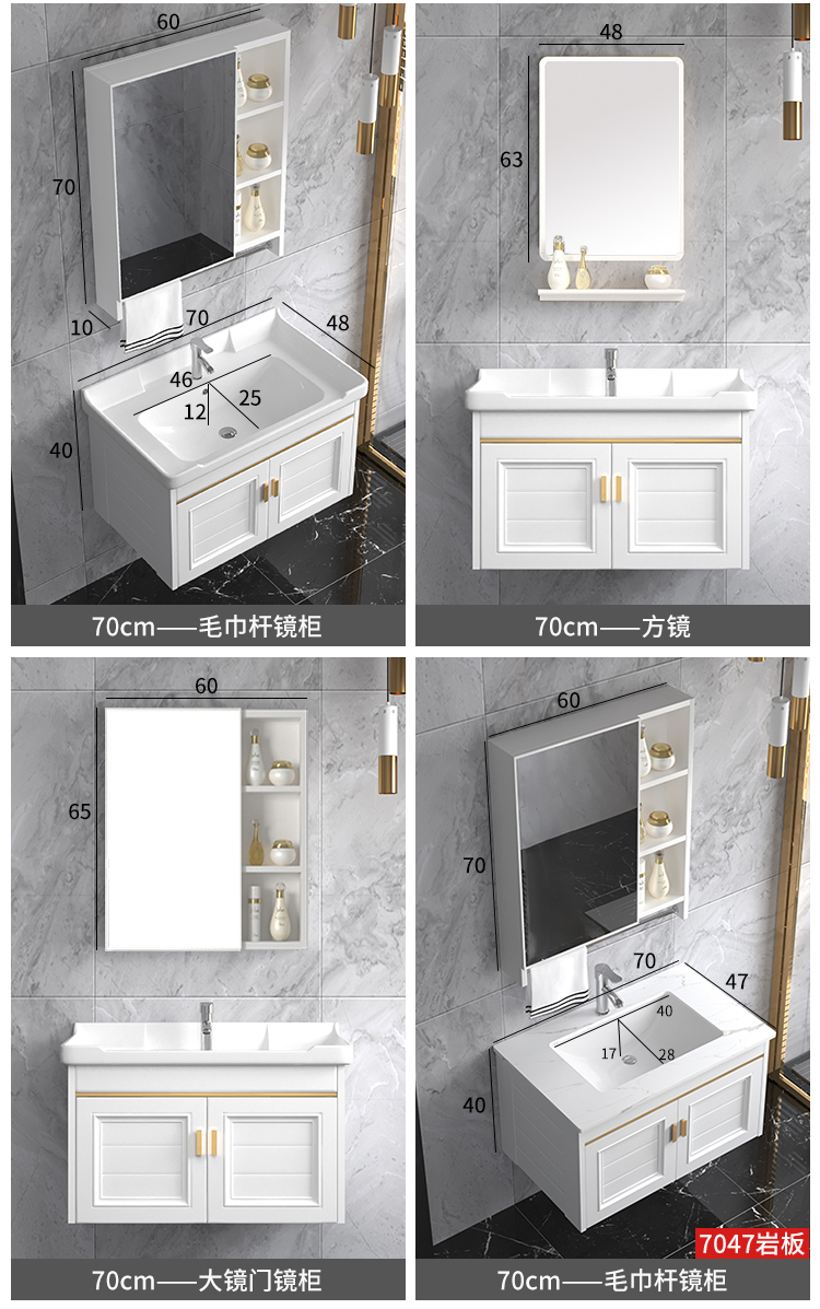 • 스톤그레인 그레이 교수형 캐비닛 70cm 세라믹 대야 풀 세트 + [미러 도어 미러 캐비닛]]