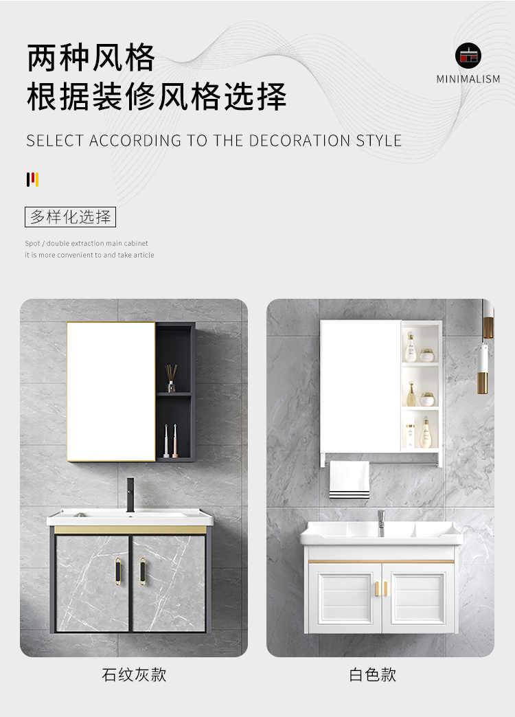 • 스톤그레인 그레이 교수형 캐비닛 80cm 세라믹 대야 풀 세트 + [미러 도어 미러 캐비닛]]