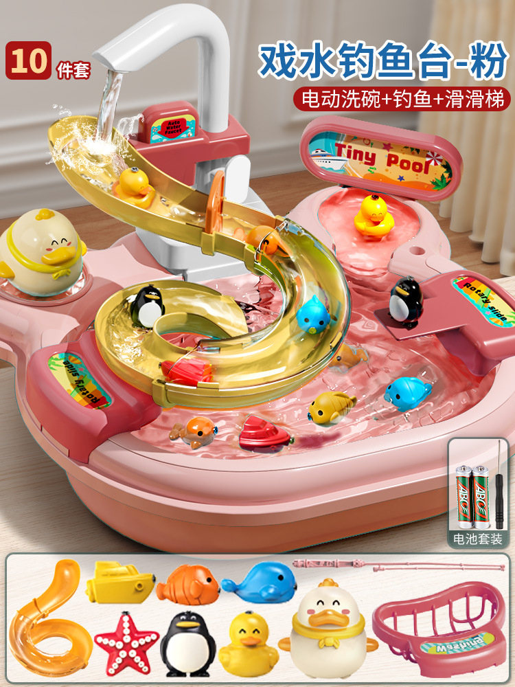 어린이 전기 식기 세척기 소년과 소녀 놀이 주방 자동 물 놀이 교육 낚시 장난감 워터 파크
