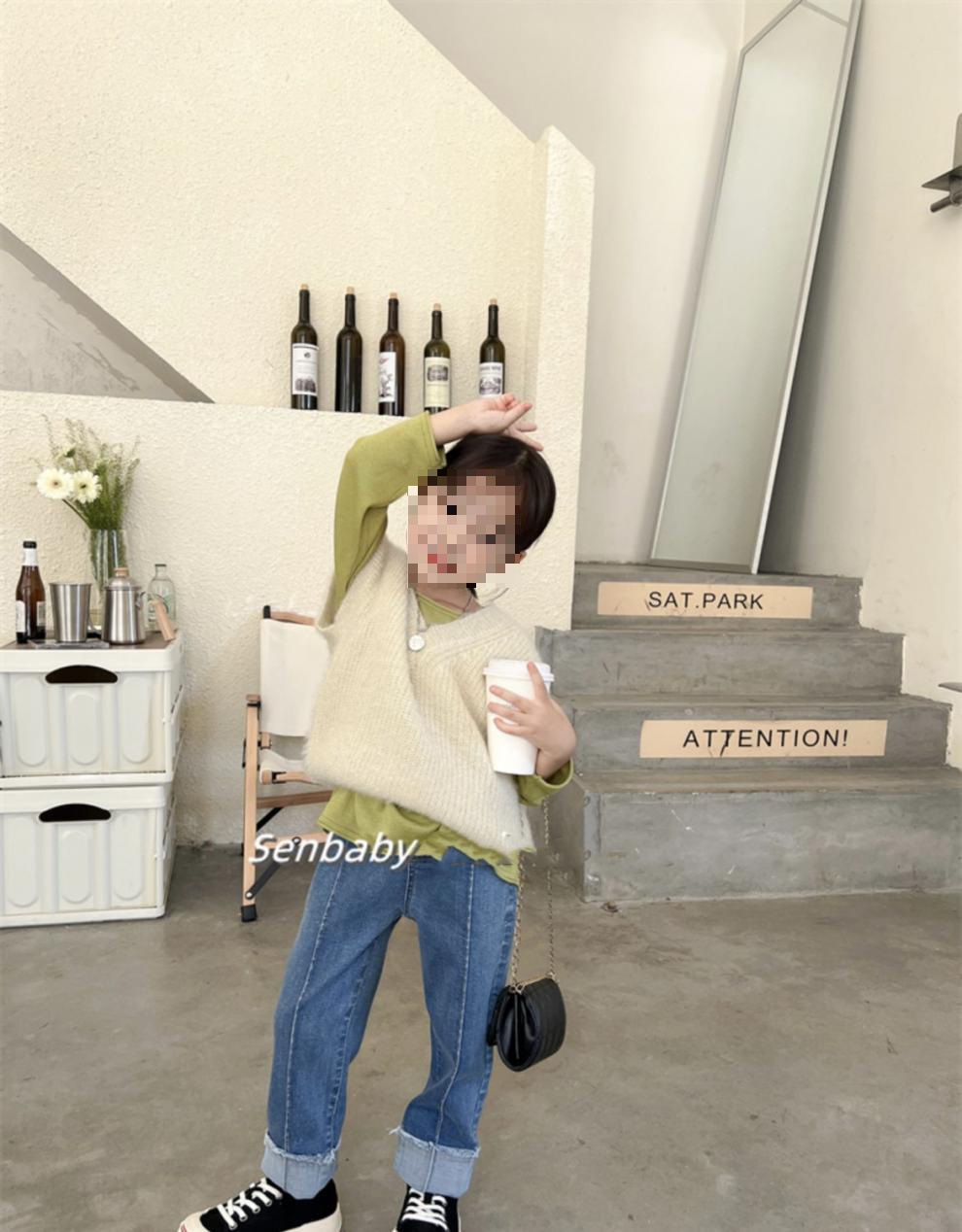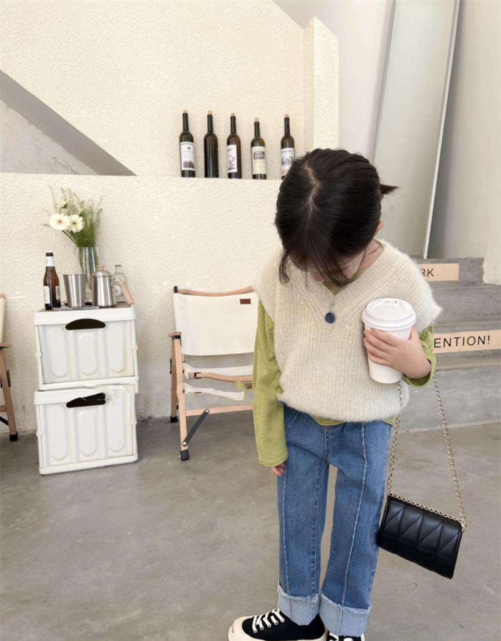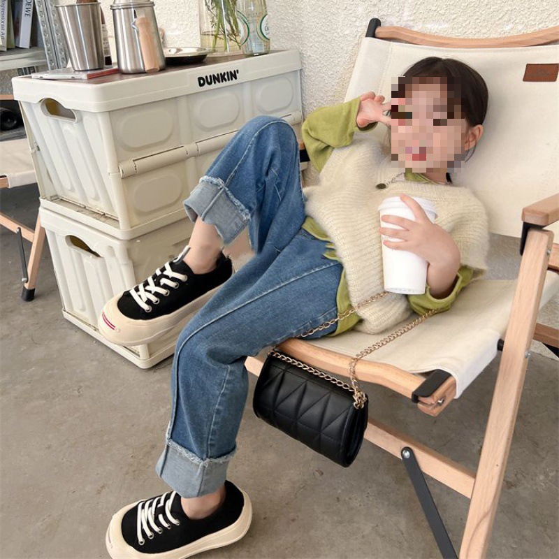 여아 2023 새로운 청바지 모든 매치 스트레이트 바지 봄과 가을 한국 스타일 유행 커프 워싱 팬츠스토어 가기