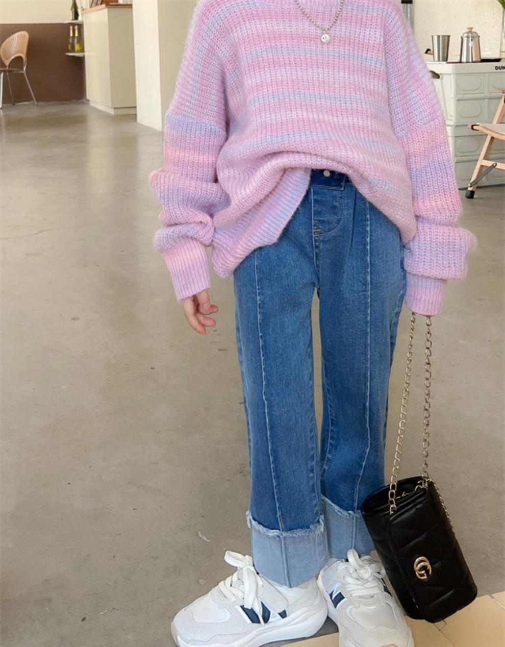 여아 2023 새로운 청바지 모든 매치 스트레이트 바지 봄과 가을 한국 스타일 유행 커프 워싱 팬츠
