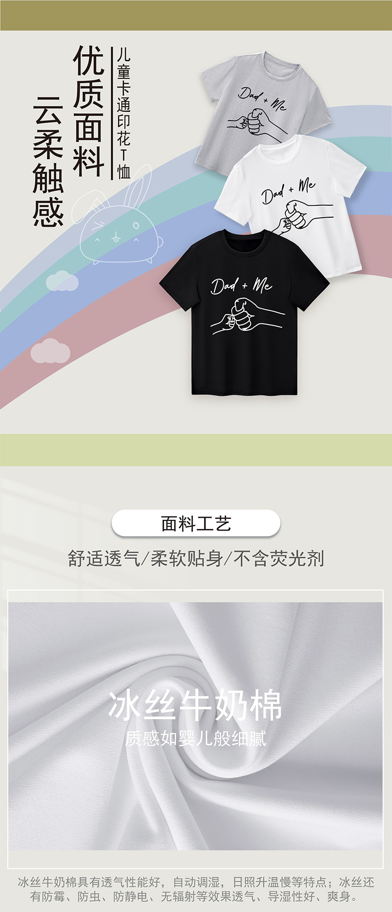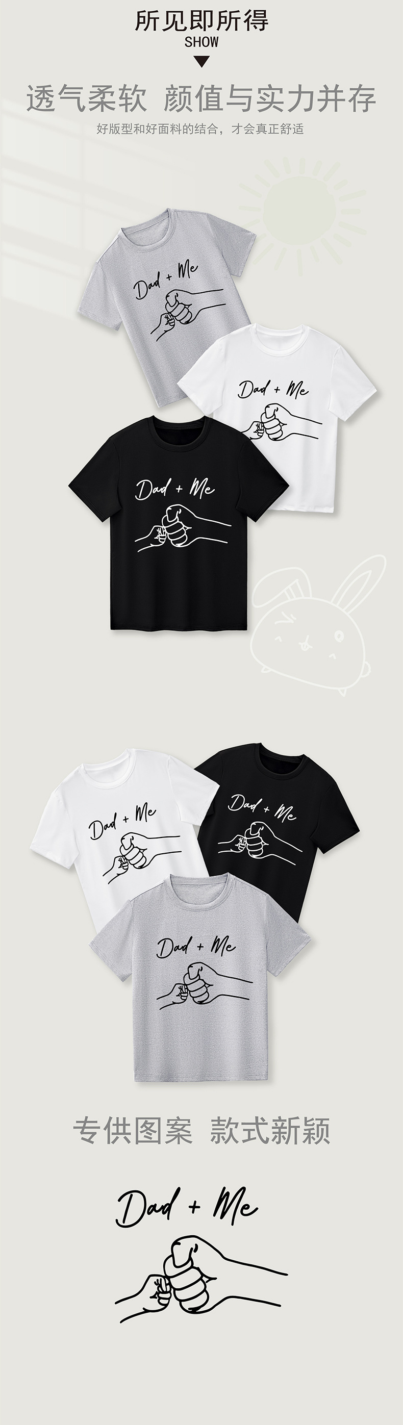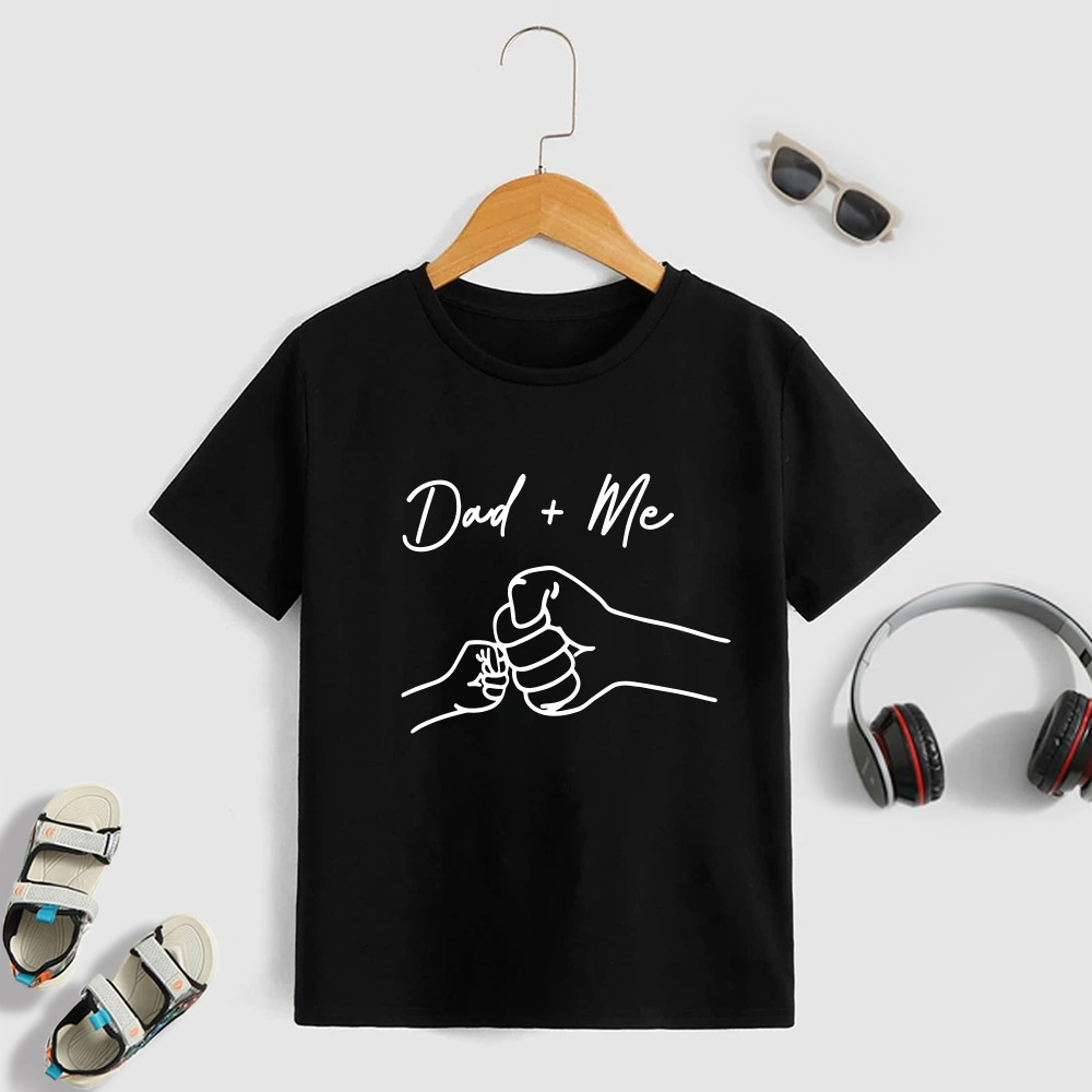 TEMU 크로스 보더 유럽과 미국 소년 반팔 티셔츠 "Dad + Me" 인쇄 여름 새로운 캐주얼 라운드 넥 아동 의류