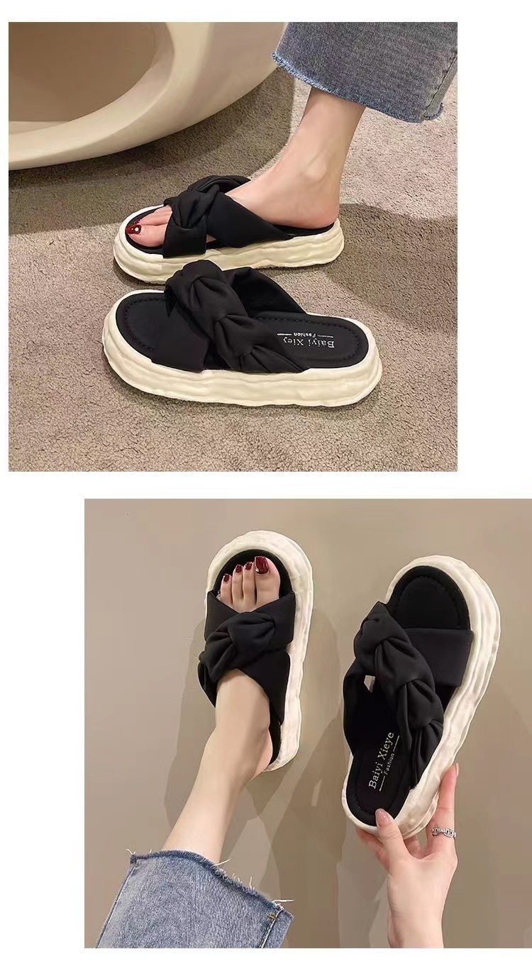 새로운 여름 폭발 두꺼운 바닥 크로스 슬리퍼 여성용 야외 해변 패션 모든 경기 미끄럼 방지 페어리 스타일 플랫폼 바닥 샌들
