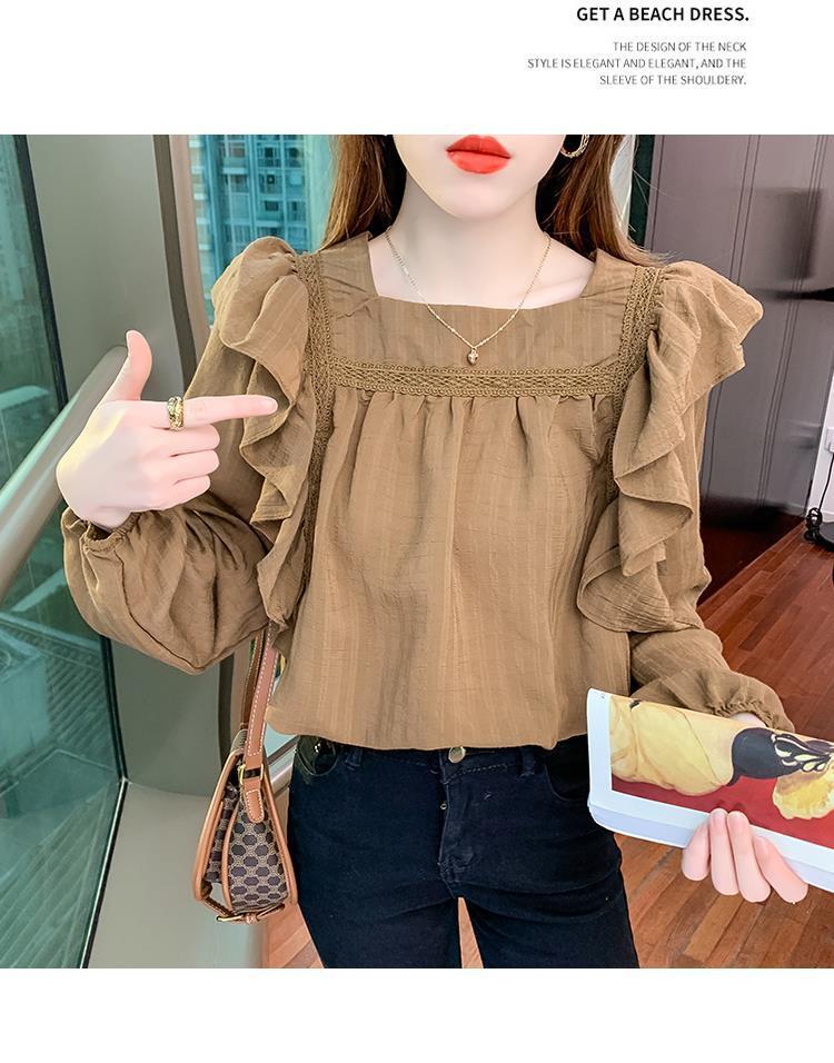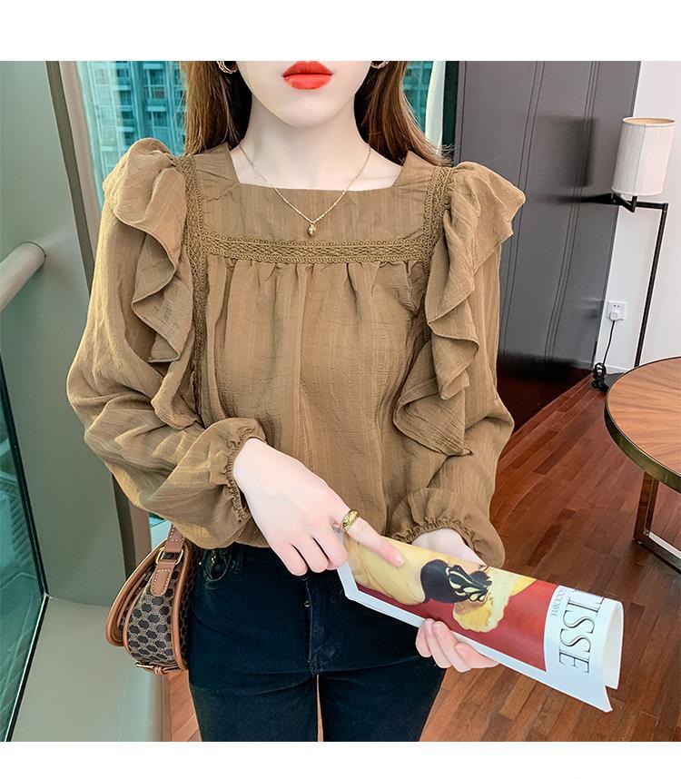 긴 소매 쉬폰 셔츠 여성의 봄과 가을 2023 새로운 패션 최고의 서유럽 상품 가을과 겨울 바닥 셔츠
