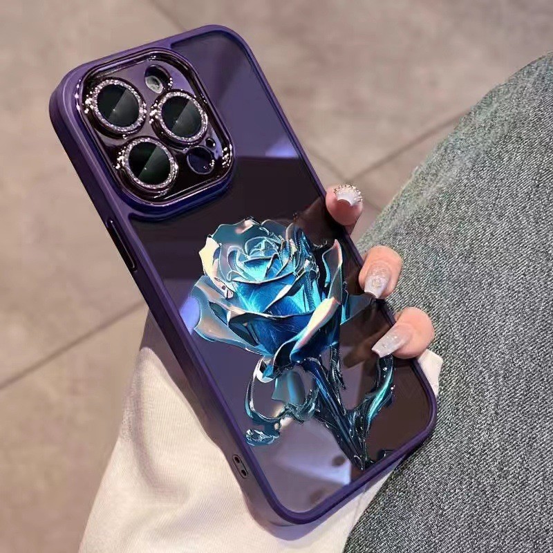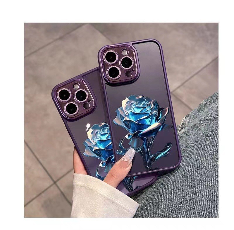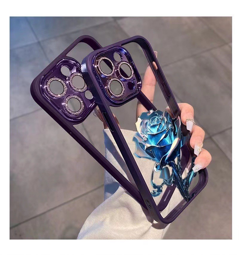 크리스탈 블루 로즈 애플 14Promax 휴대 전화 케이스 13 페인트 12 반짝이 렌즈 필름 포함 올인클루시브 11스토어 가기