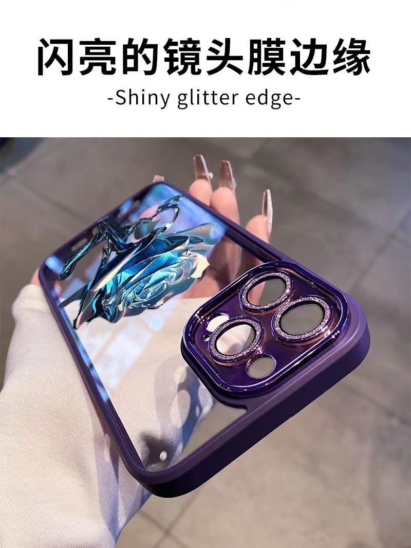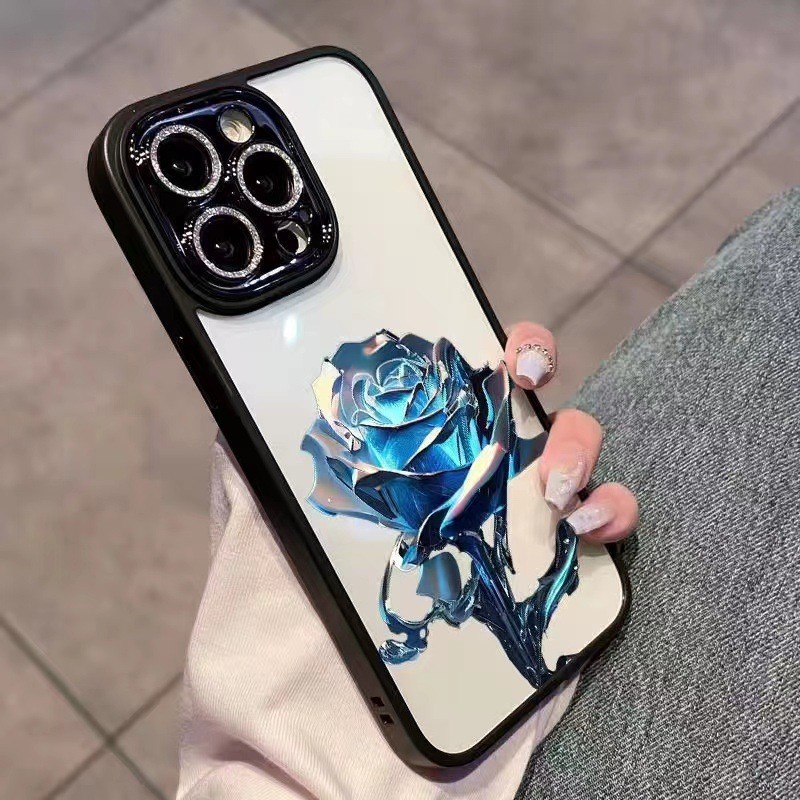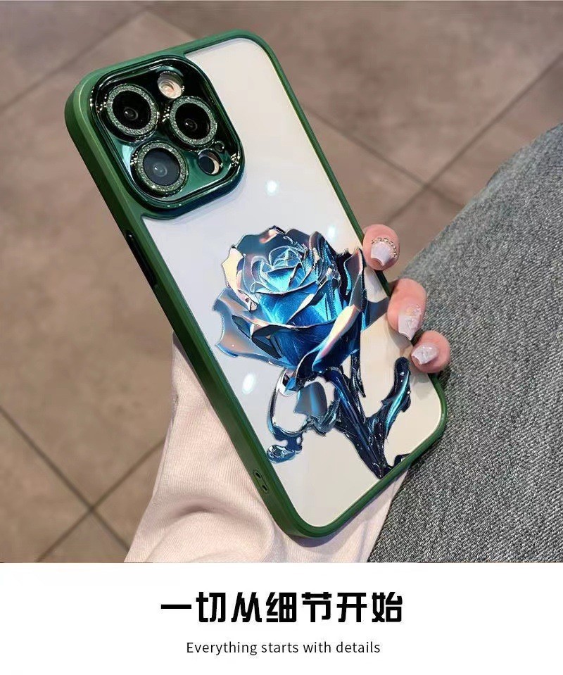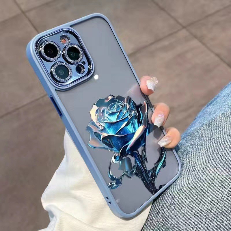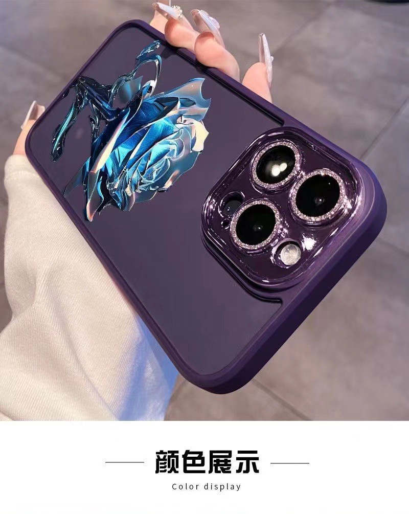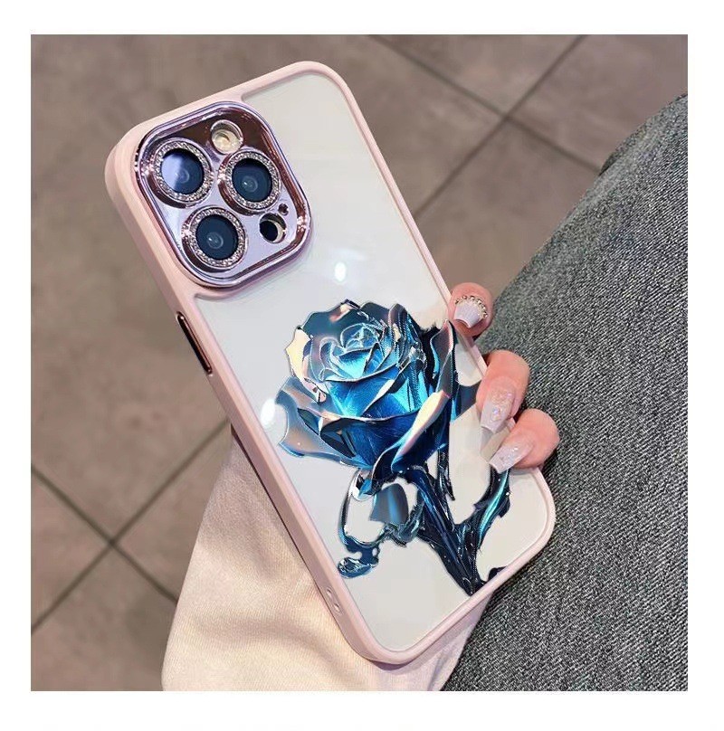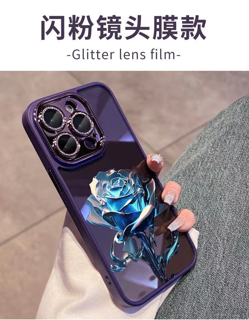 크리스탈 블루 로즈 애플 14Promax 휴대 전화 케이스 13 페인트 12 반짝이 렌즈 필름 포함 올인클루시브 11