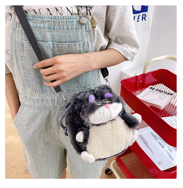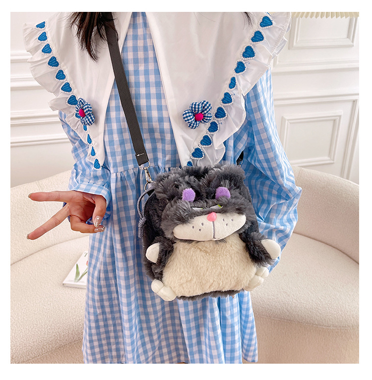 도매 2025 신상 고양이 플러시 가방 달콤하고 귀여운 인형 장난감 가방 소녀 학생용 숄더 크로스백스토어 가기