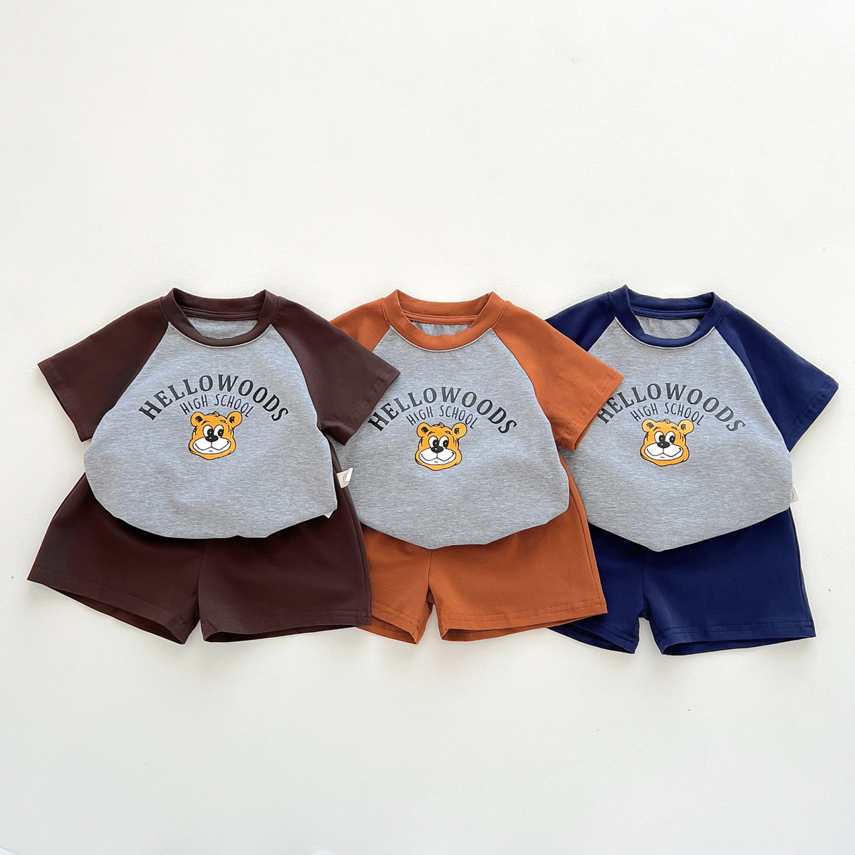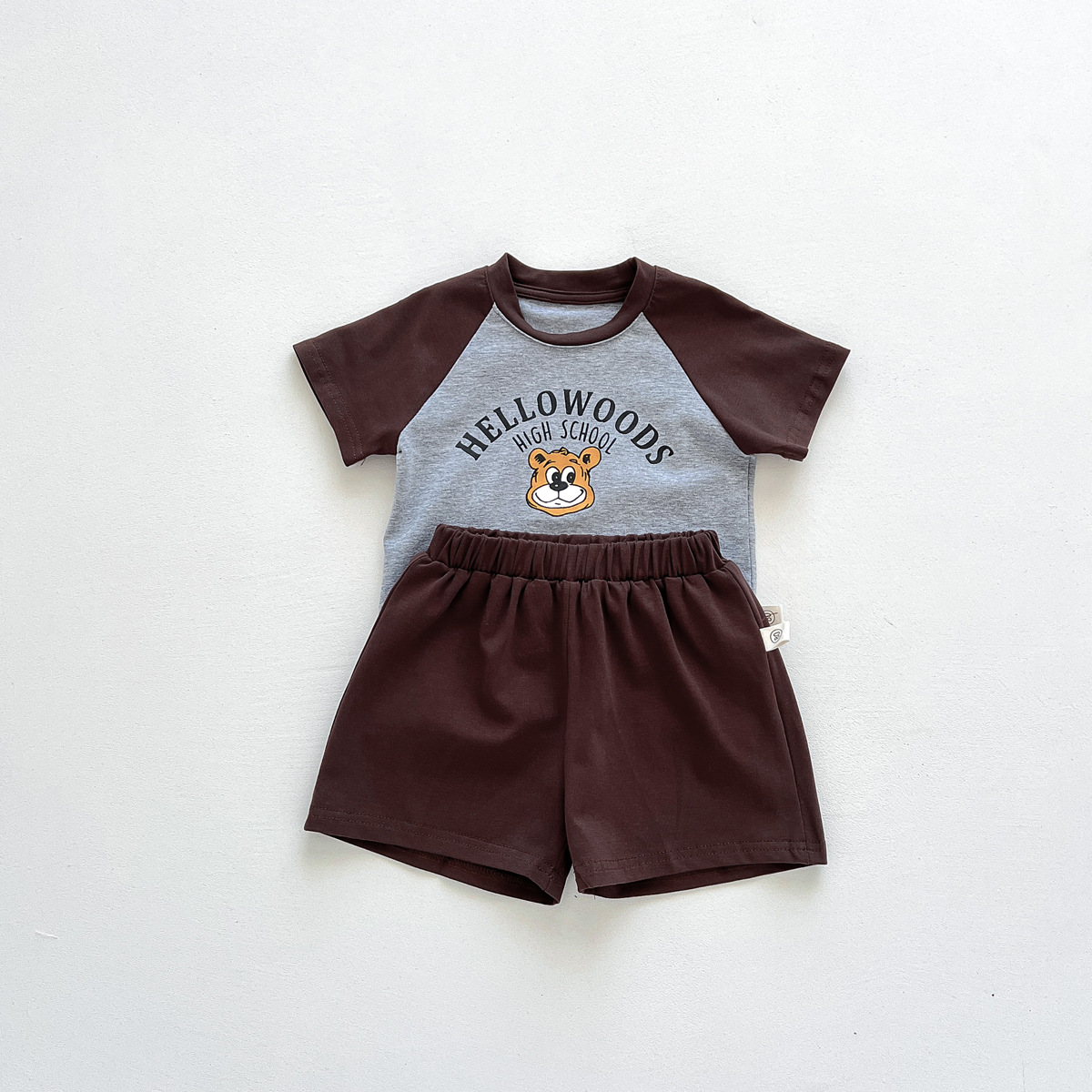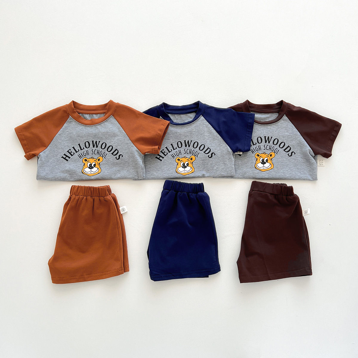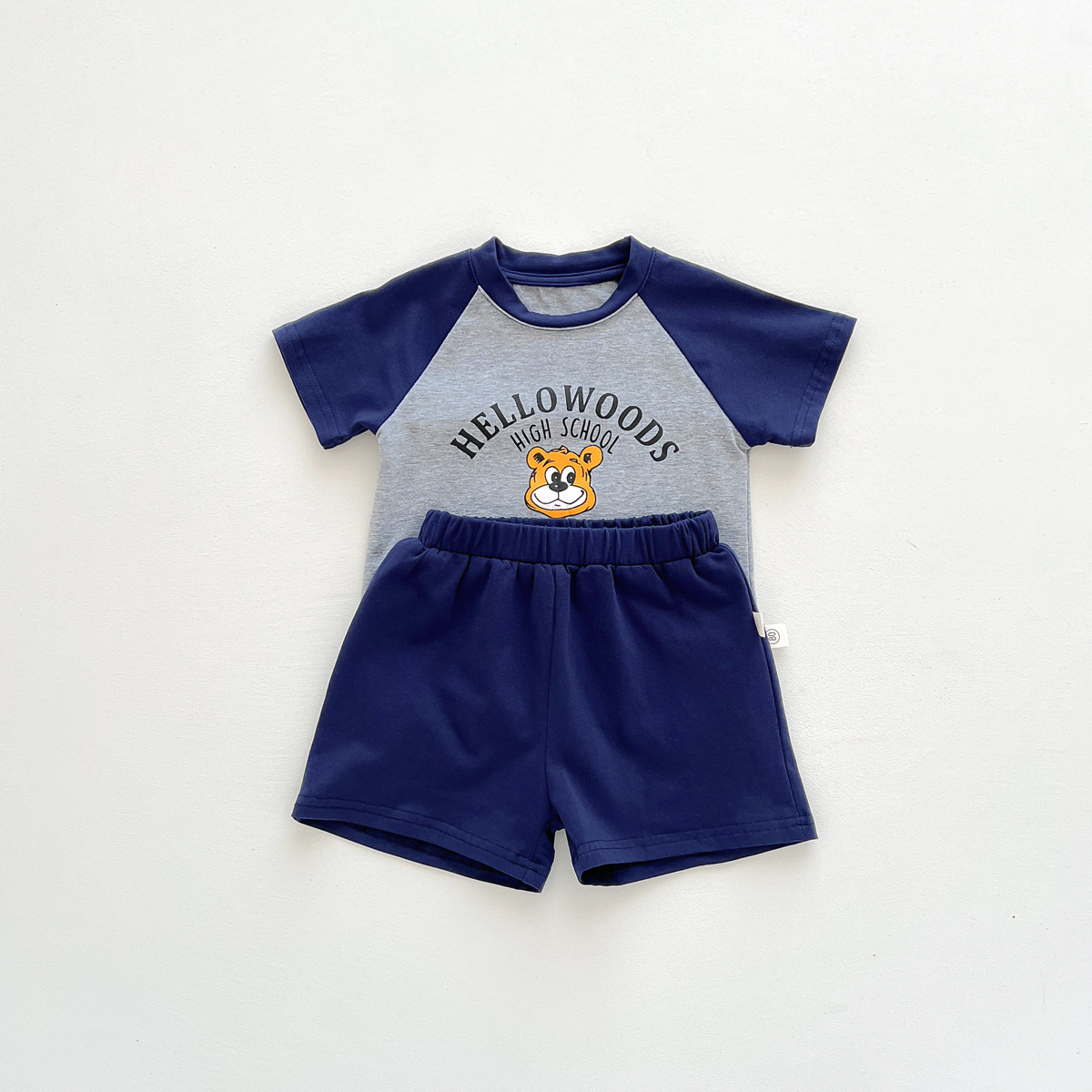 2023 여름 새로운 어린이 반팔 반바지 세트 in 한국식 어린이 만화 인쇄 캐주얼웨어 투피스 세트스토어 가기