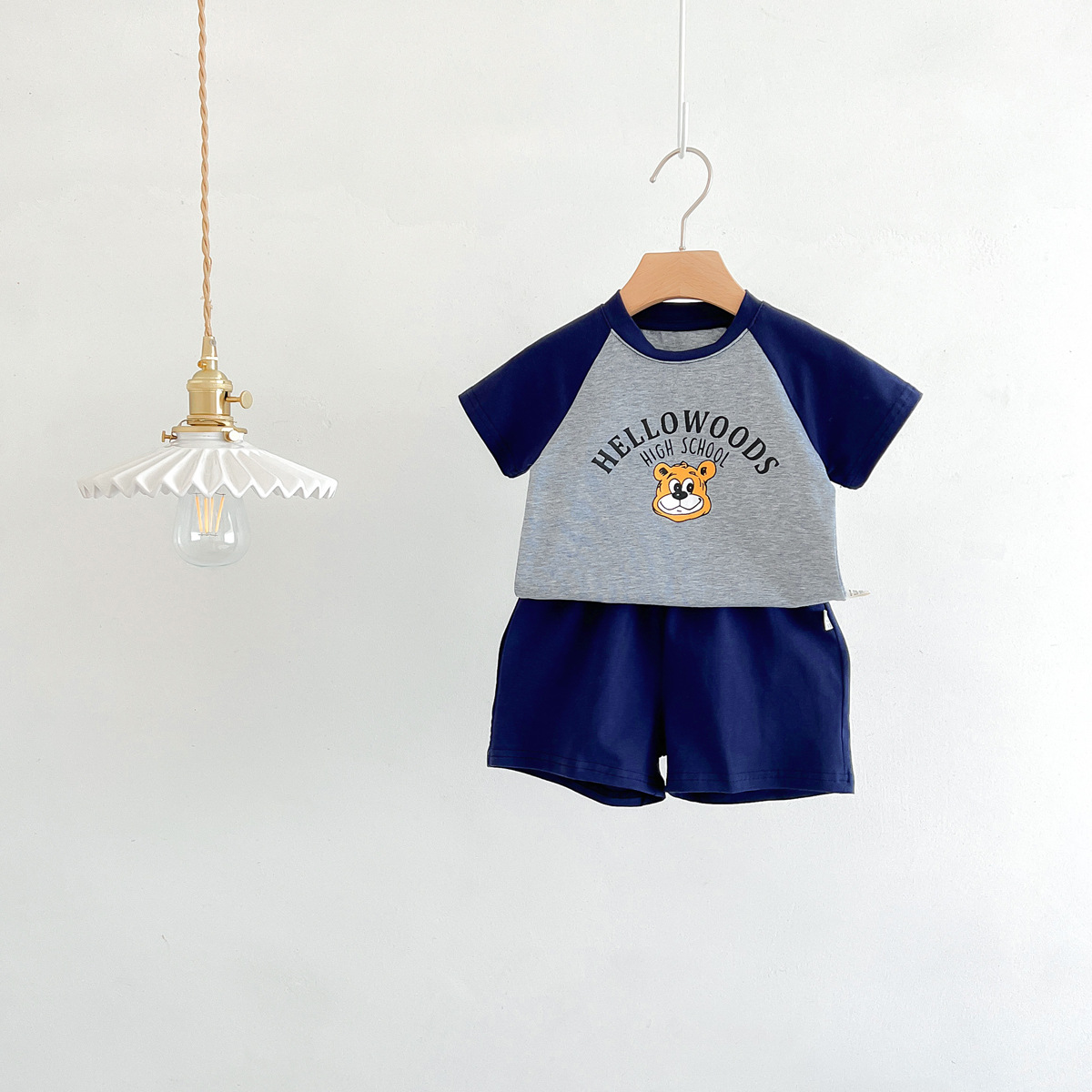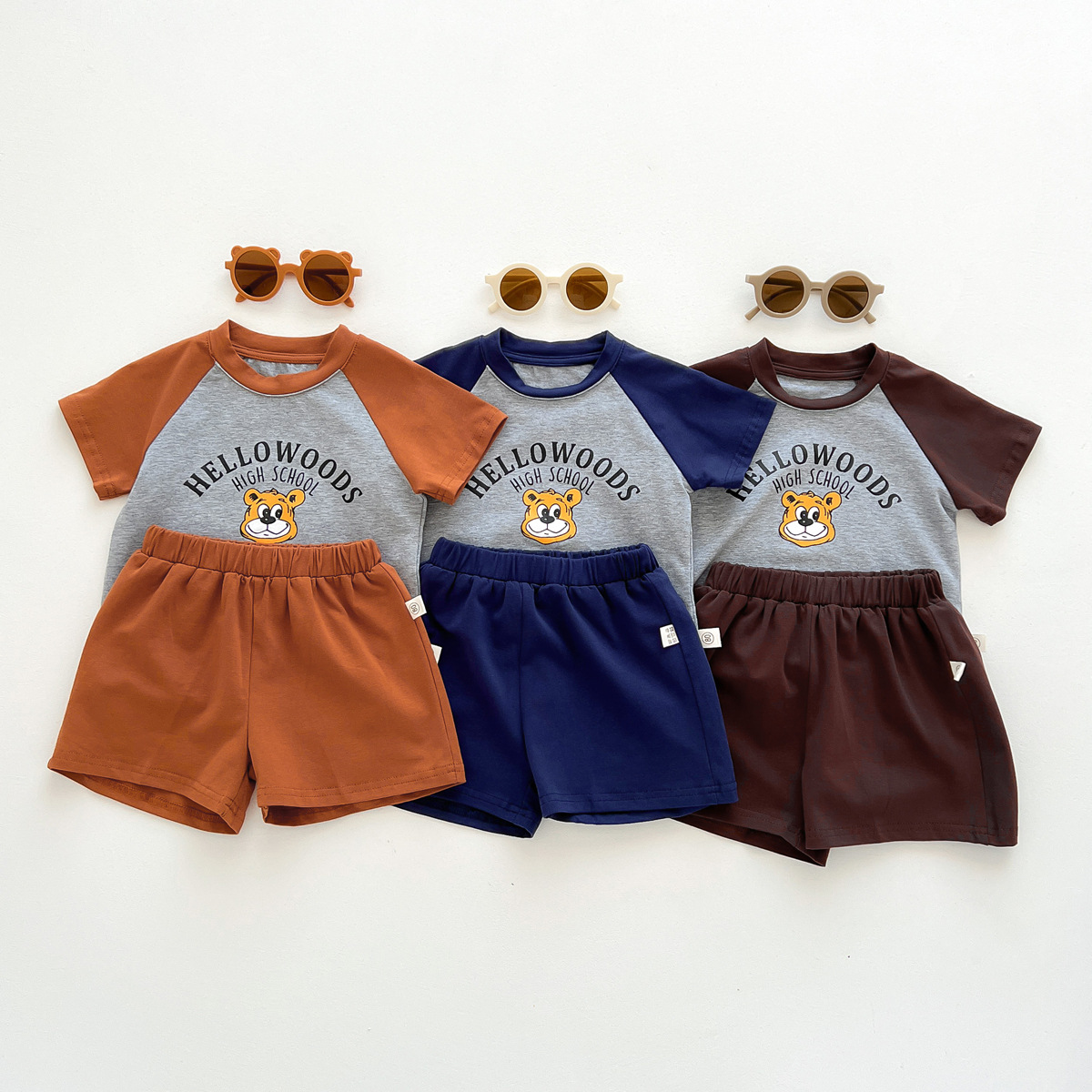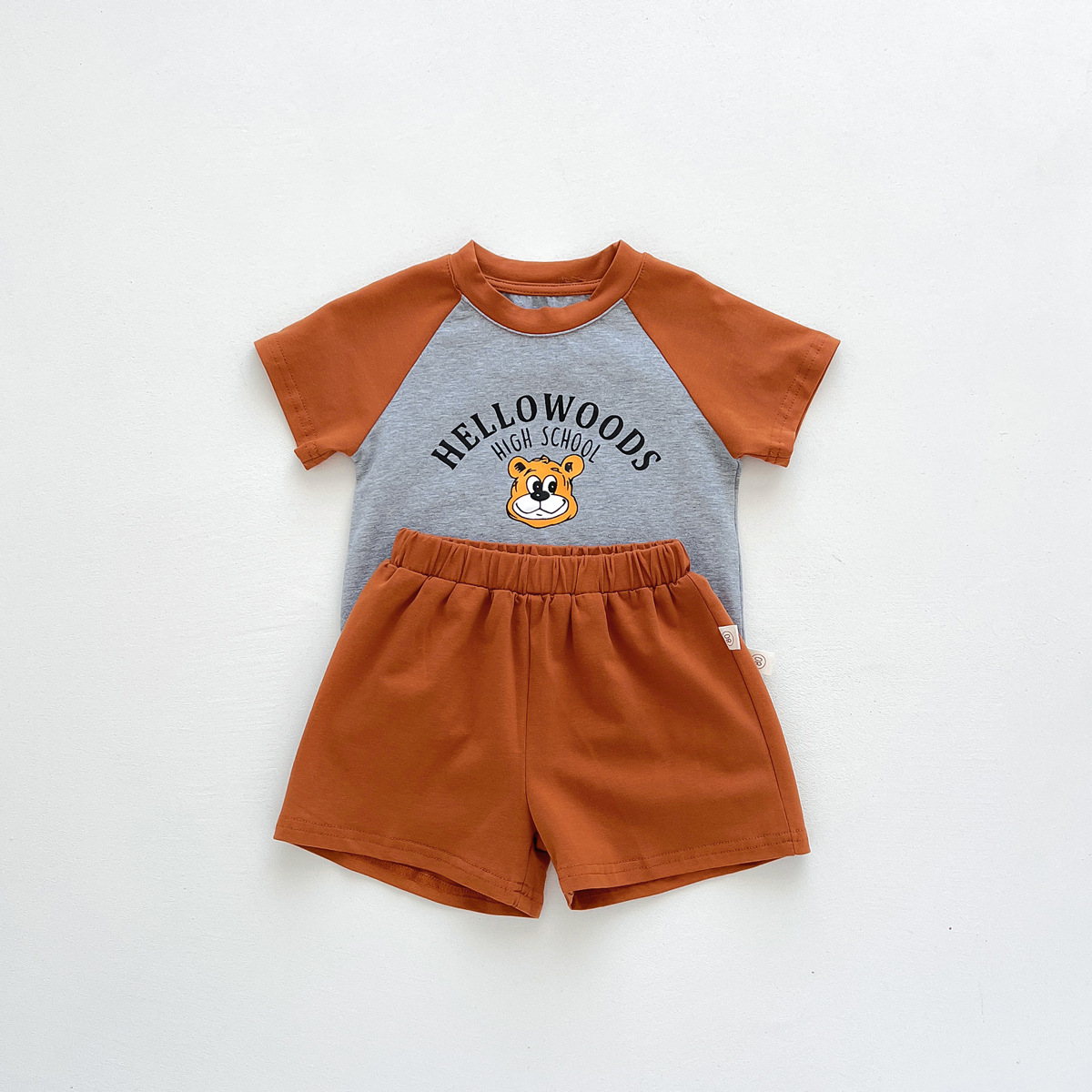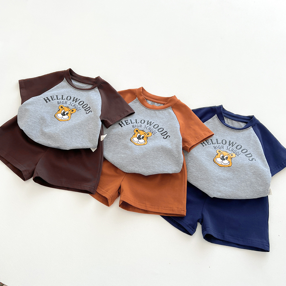 2023 여름 새로운 어린이 반팔 반바지 세트 in 한국식 어린이 만화 인쇄 캐주얼웨어 투피스 세트스토어 가기