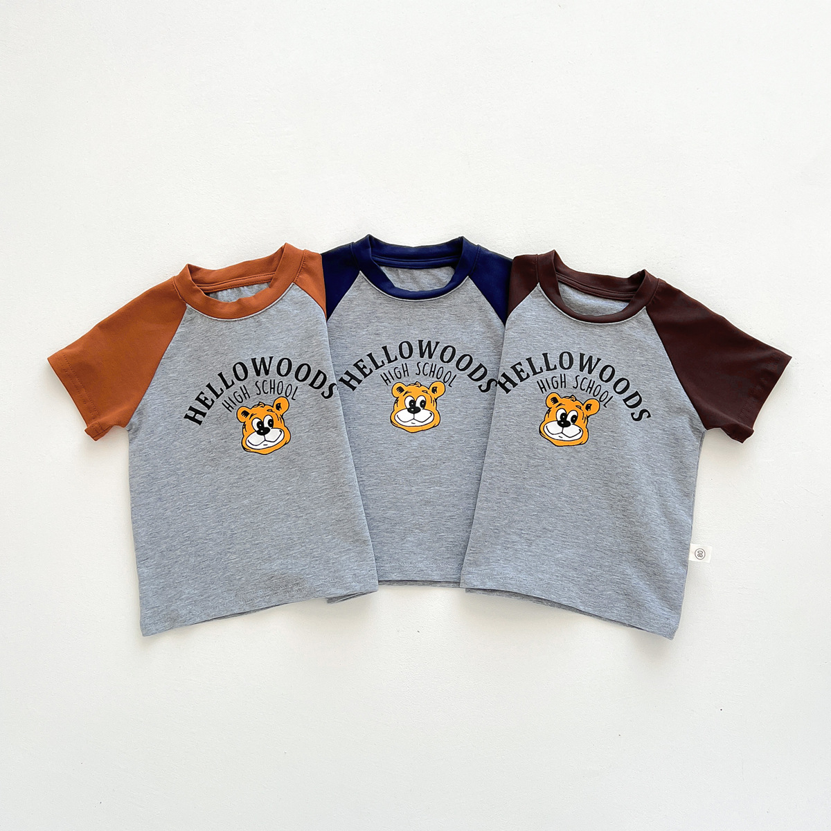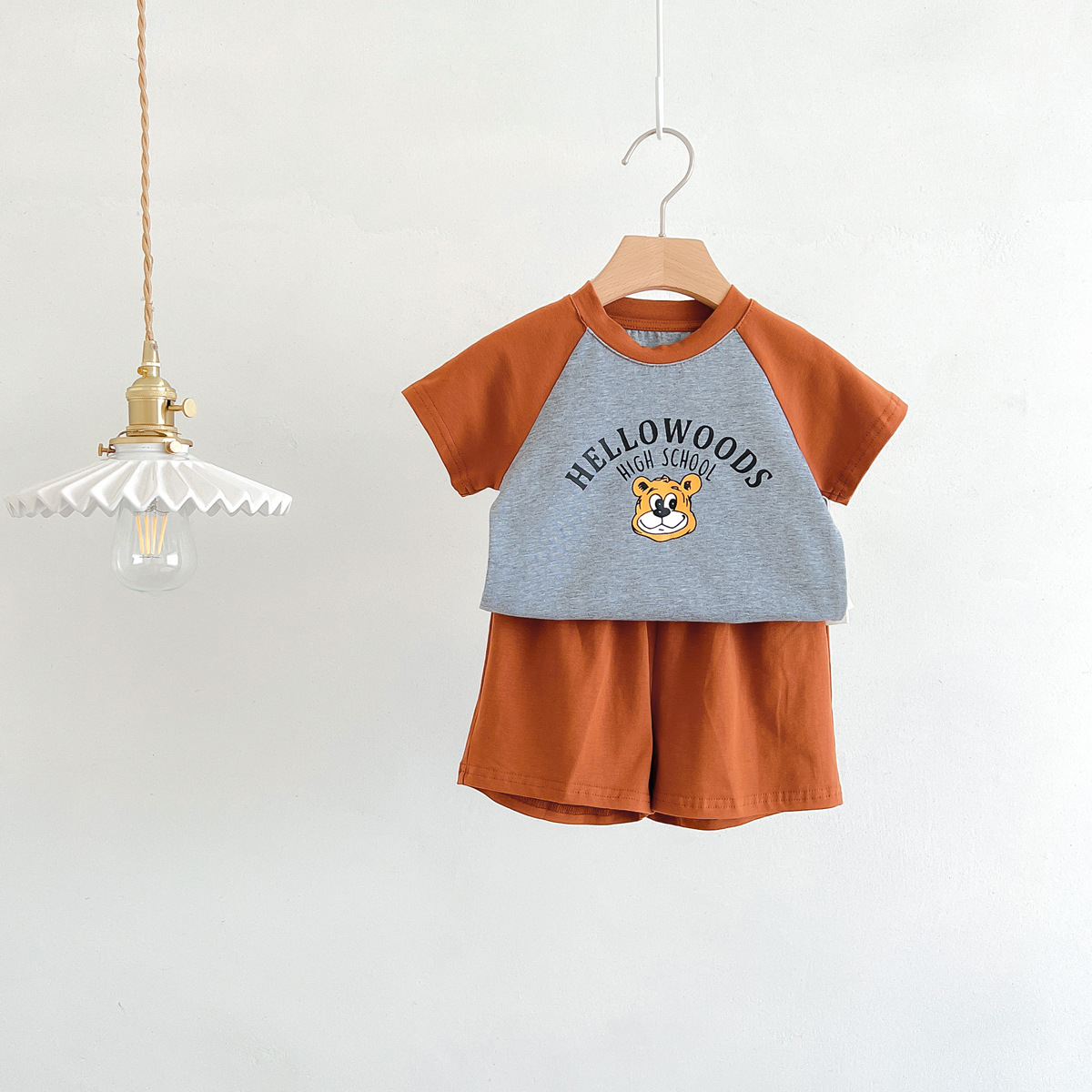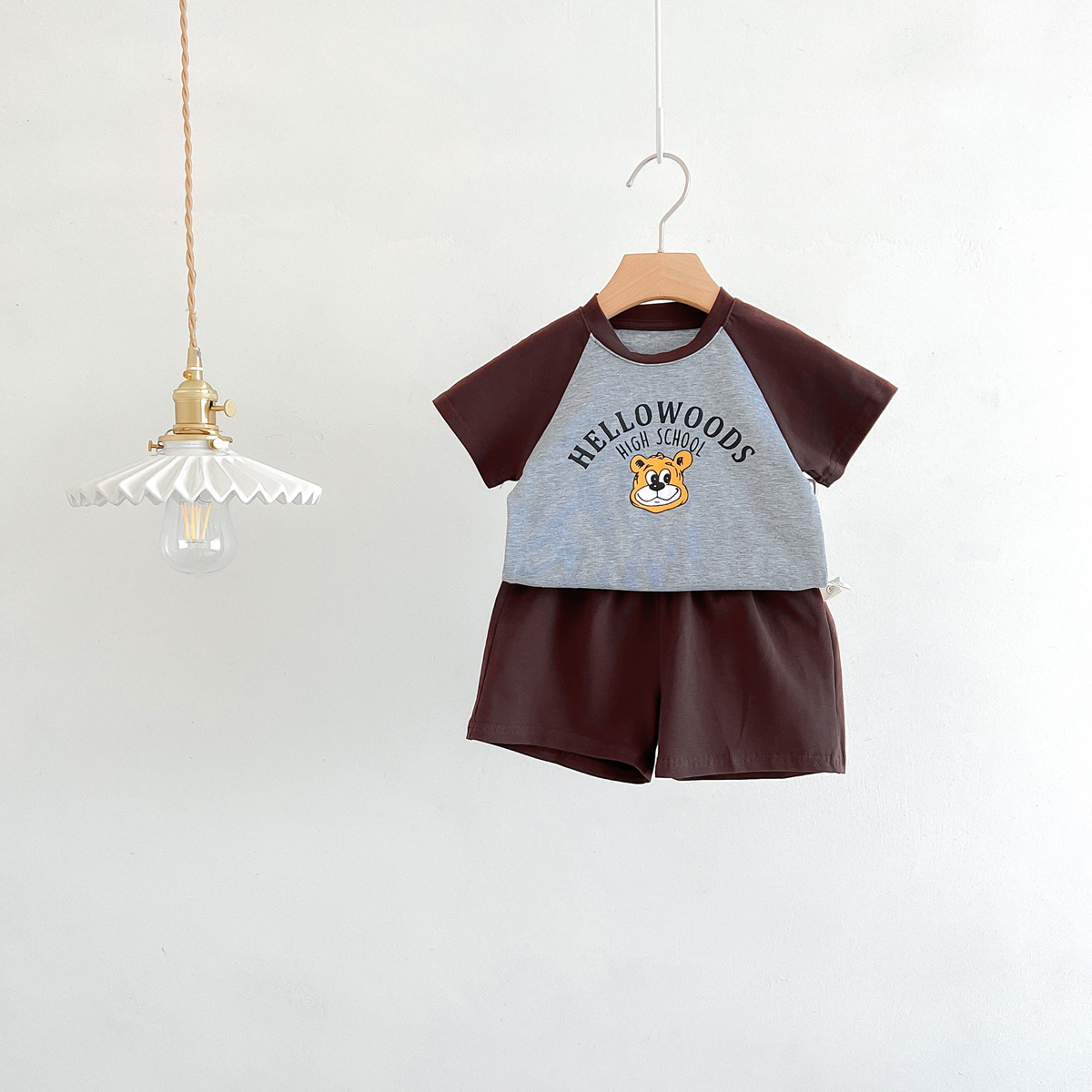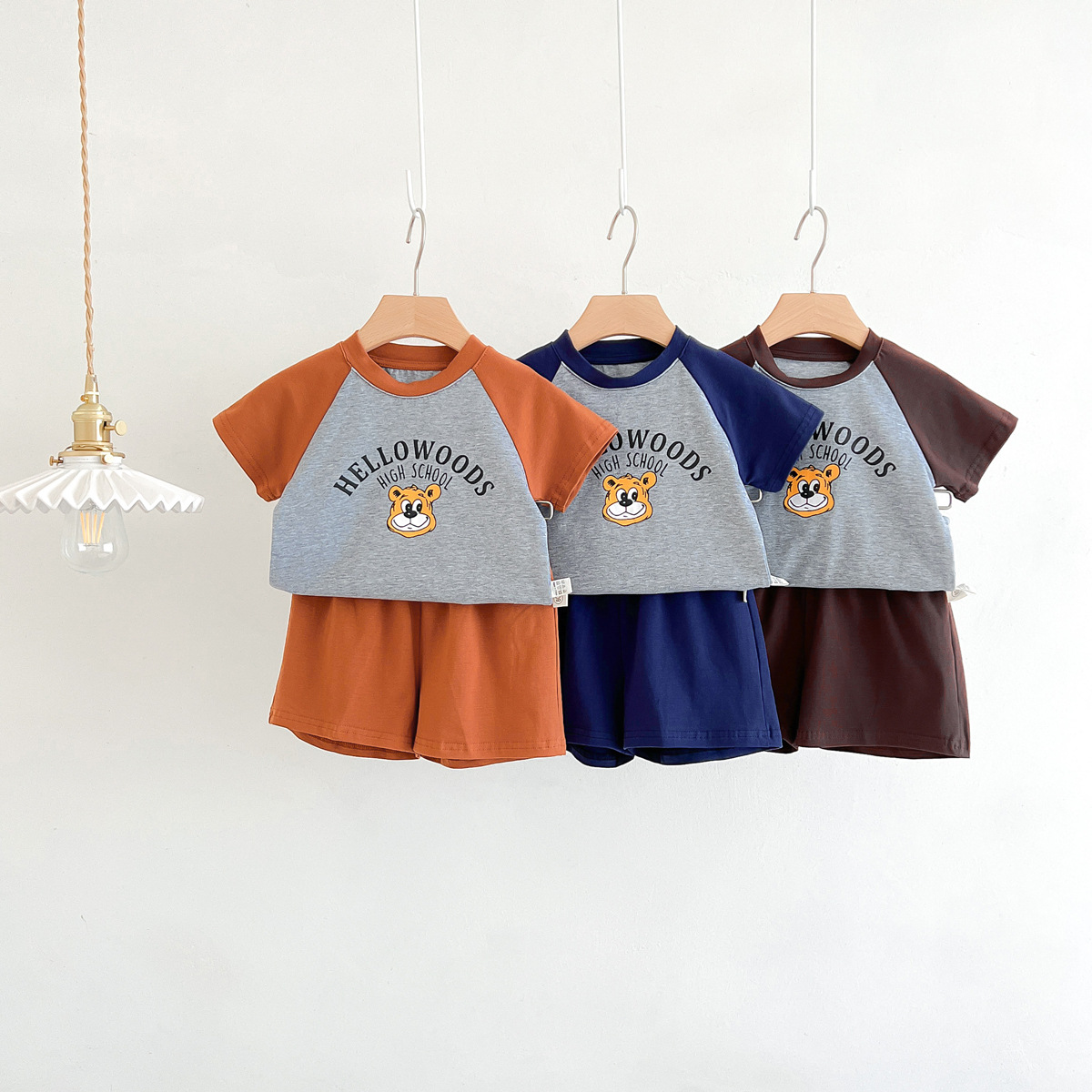 2023 여름 새로운 어린이 반팔 반바지 세트 in 한국식 어린이 만화 인쇄 캐주얼웨어 투피스 세트스토어 가기