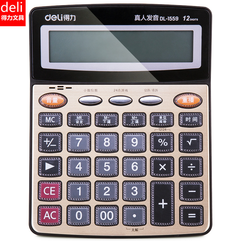 델리 1559 문구 음성 계산기 다기능 사무실 금융 계산기 12 비트 대형 화면 컴퓨터