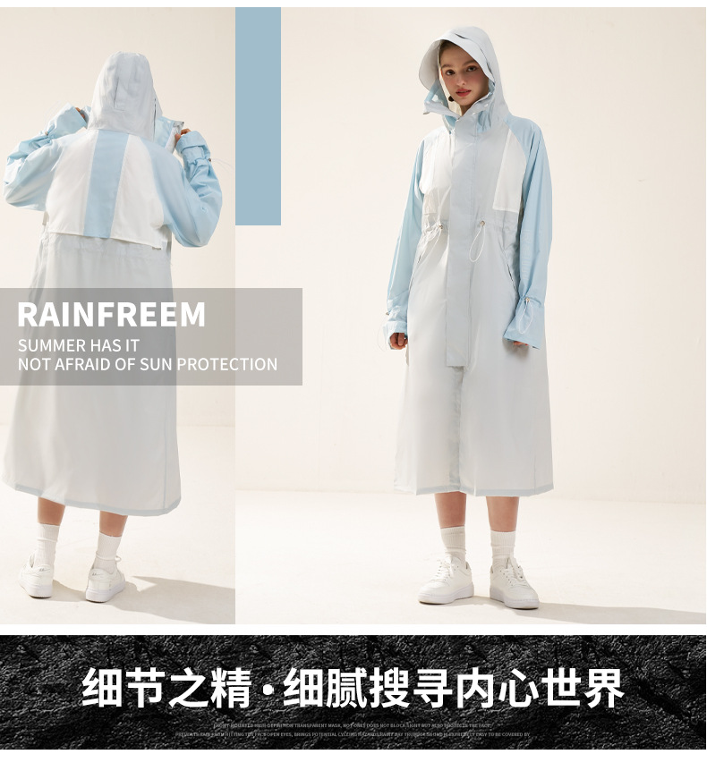 Qinfeiman 자외선 차단제 의류 여성 여름 2023 새로운 방수 재킷 경량 긴 중간 길이 야외 자외선 차단제 의류스토어 가기