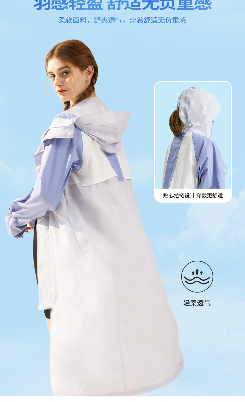 Qinfeiman 자외선 차단제 의류 여성 여름 2023 새로운 방수 재킷 경량 긴 중간 길이 야외 자외선 차단제 의류