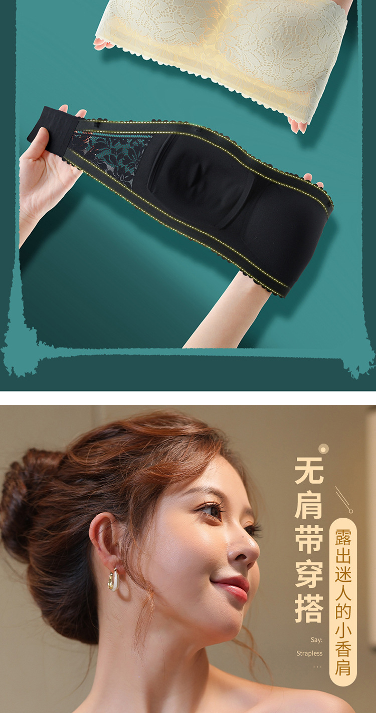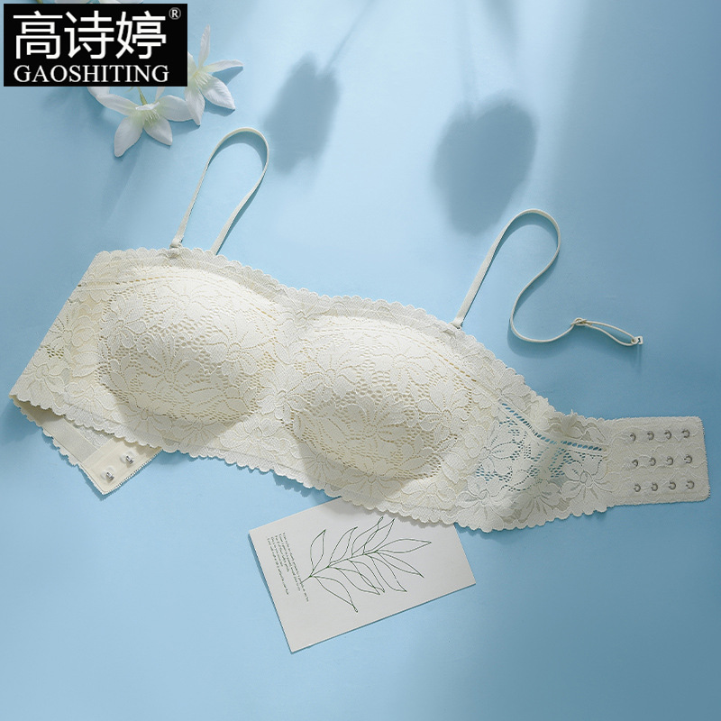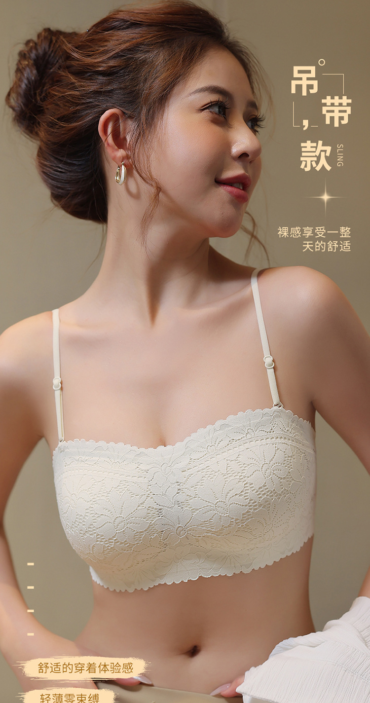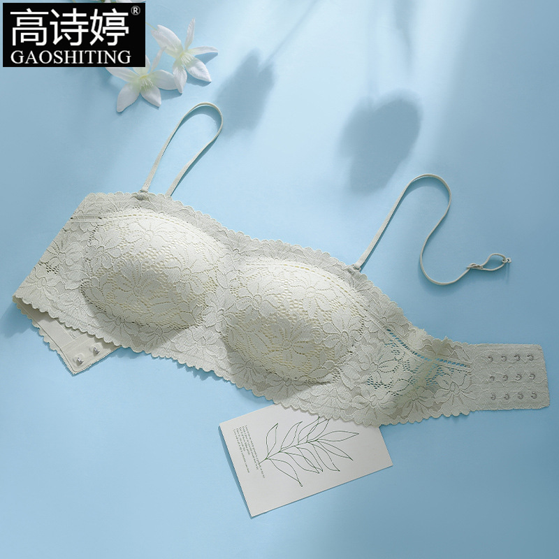 끈이 없는 레이스 랩 유방 원활한 튜브 탑 속옷 여름 작은 가슴 안티 라이트 아름다운 백 브라 일체형 고정 컵스토어 가기