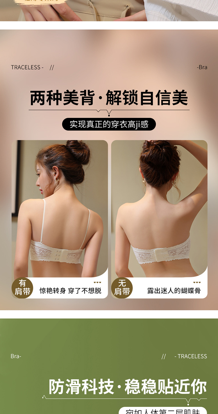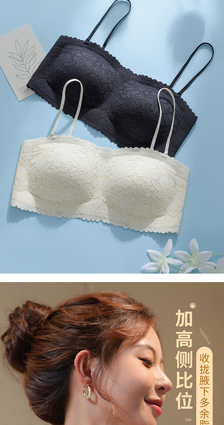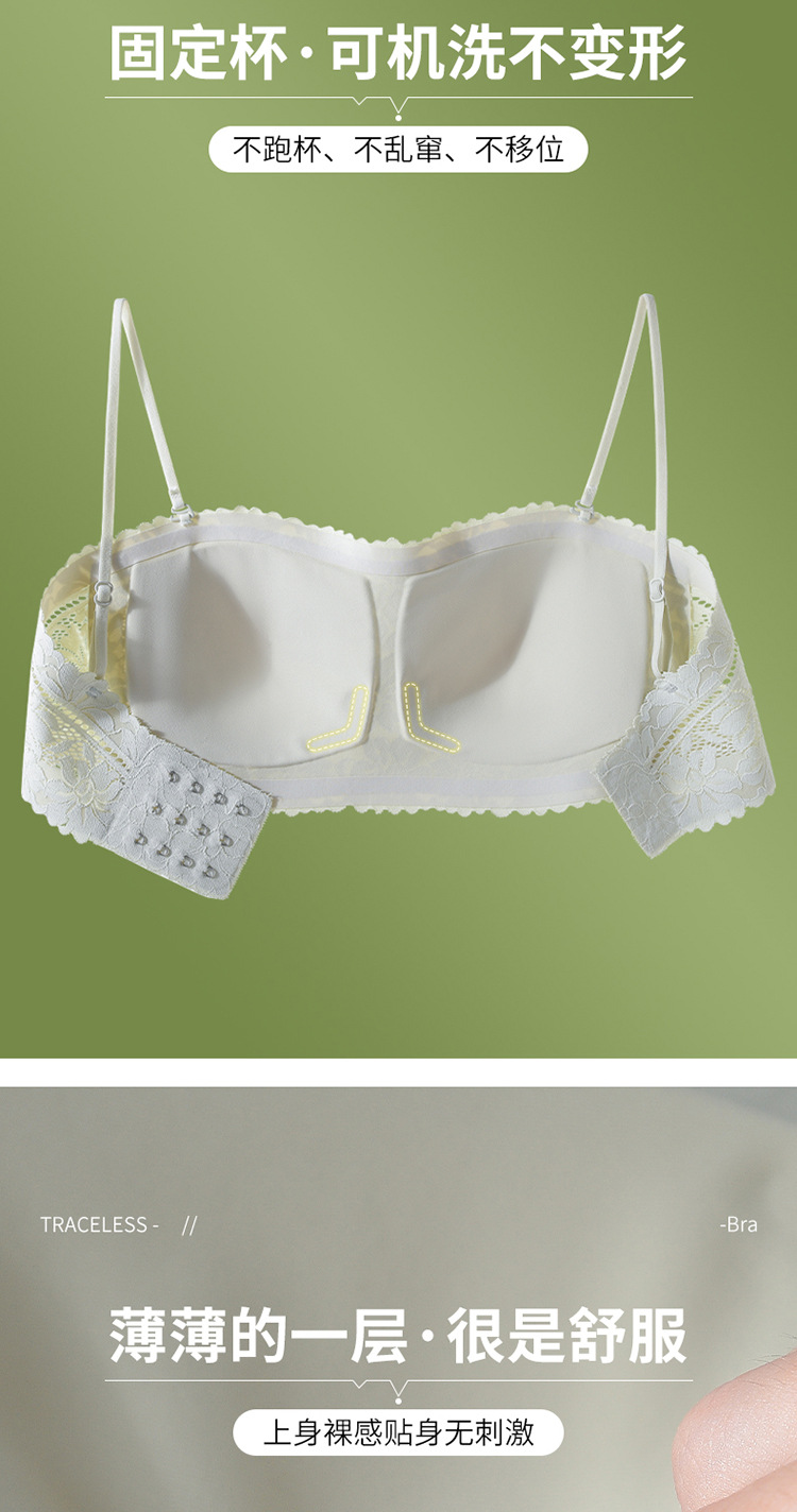 끈이 없는 레이스 랩 유방 원활한 튜브 탑 속옷 여름 작은 가슴 안티 라이트 아름다운 백 브라 일체형 고정 컵