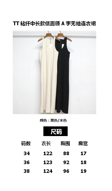 2023 여름 새로운 TT 비스코스 중간 길이 낮은 크루넥 A 민소매 원피스 틈새 롱 B 원피스