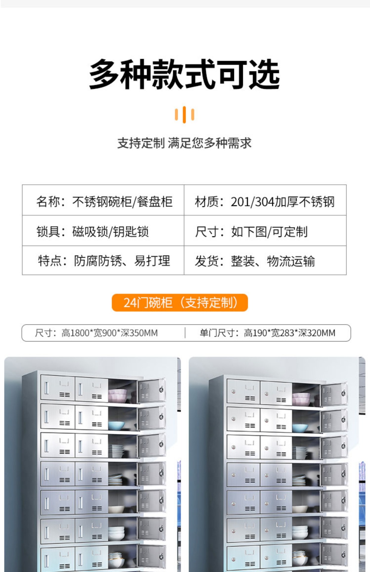 304 스테인레스 스틸 다이닝 플레이트 캐비닛 학교 도시락 사물함 매점 찬장 직원 식당 잠금 멀티 도어 사이드 보드스토어 가기