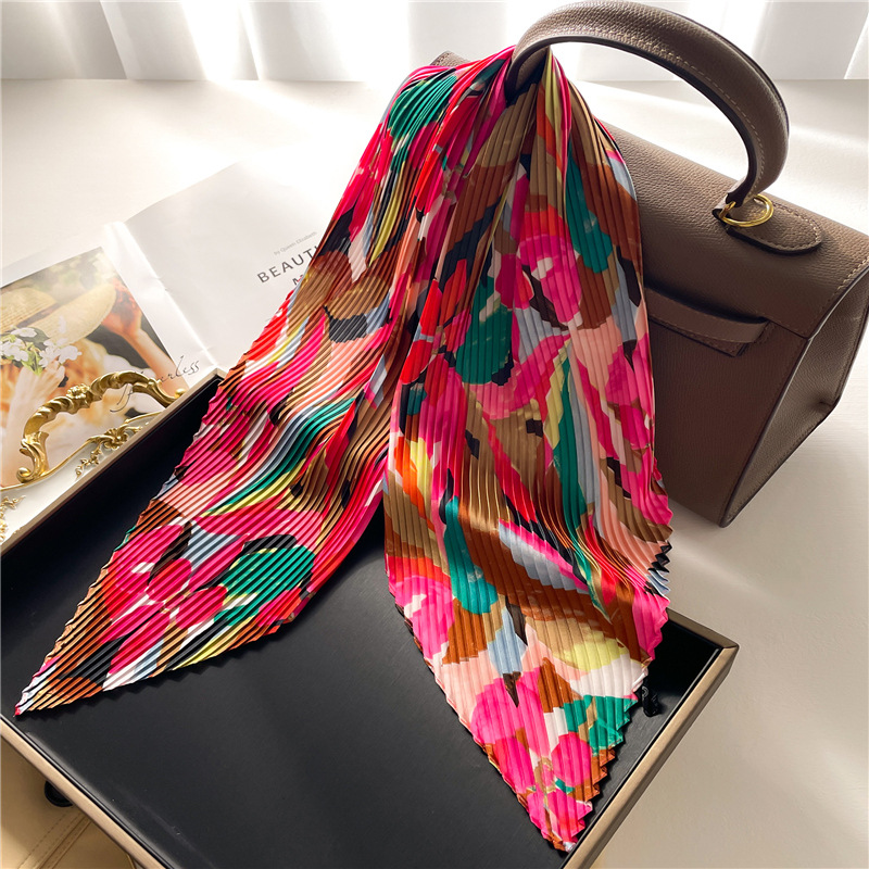 컬러 블록 인쇄 우아한 구겨진 사각 스카프 가벼운 럭셔리 패션 스카프 여성의 새로운 우아한 실크 스카프 모조 실크 전문 스카프스토어 가기